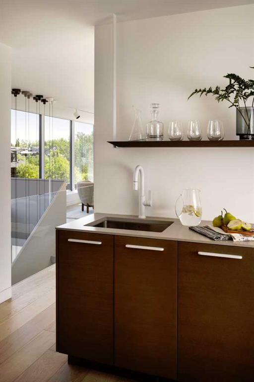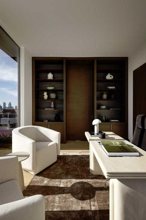 Nestled in the prestigious Briar Hill neighborhood, this warm contemporary masterpiece, built by Wurzer Page Homes, spans 6,000 sq ft of exquisite living space, embodying California-inspired design and exceptional craftsmanship. Designed by R-EID Studio as a true architectural gem, this south-facing home boasts unequaled city views from every level, with all three exterior patio spaces basking in southern light, framed by an oversized Loewen window package. Constructed with steel, wood, and concrete, the residence exudes sophistication with high-end quartzite and stone finishes, matte white California Faucets, and a stainless steel island. The entire home operates on a Lutron control system, featuring designer light fixtures throughout, including a stunning Bocci light fixture above the basement bar. Designed for seamless entertaining, the walkout basement offers a 12-foot ceiling and a 36’ wide folding door, blending indoor and outdoor living. Perfect for hosting or relaxation, the home includes a 400 sq ft dedicated gym, a serene office with floor-to-ceiling windows, and heated floors in the basement and garage, with rough-in for driveway heat. Located in a tranquil setting next to green space, surrounded by luxury homes, it’s close to downtown and hospitals. With too many features to capture in print, this home must be experienced in person—a private tour is recommended. Potential buyers are advised to drive by at night to witness the captivating illumination.