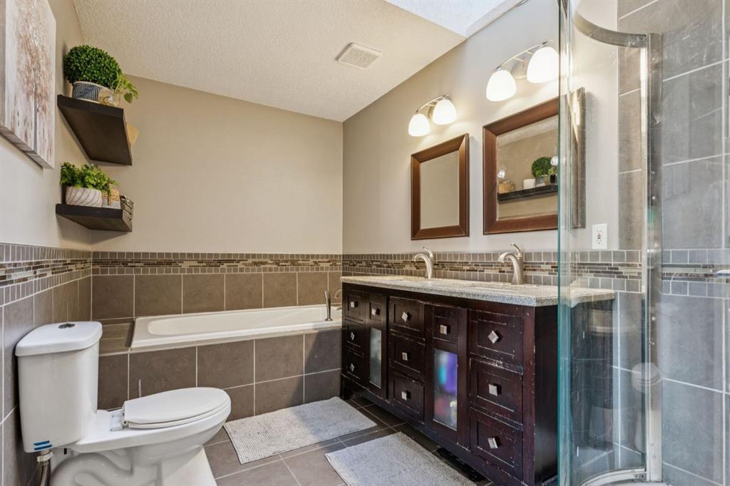 Westbrook Mall, the C-Train, and Marda Loop, and just minutes from downtown Calgary. The main floor features a cozy gas fireplace focal point, detailed trim work including crown mouldings and 6" baseboards, and hardwood through the living and dining areas, plus a convenient main-floor powder room. The kitchen includes stainless steel appliances and opens directly to the private fenced back deck. Upstairs you’ll find a spacious primary bedroom with a vaulted ceiling and great natural light, shared access to a 5-piece bath, plus a second bedroom. The finished lower level provides a flexible rec / guest space, a 3-piece bath, a large laundry room with storage, and an additional dedicated storage area. Parking is included with an assigned stall in the shared garage. Roof was replaced in 2016 and the unit includes air conditioning. Some finishes are original and would benefit from cosmetic updates — a chance to add value and put your finishing touches on a home with great bones in one of Calgary’s most sought-after inner-city neighbourhoods.