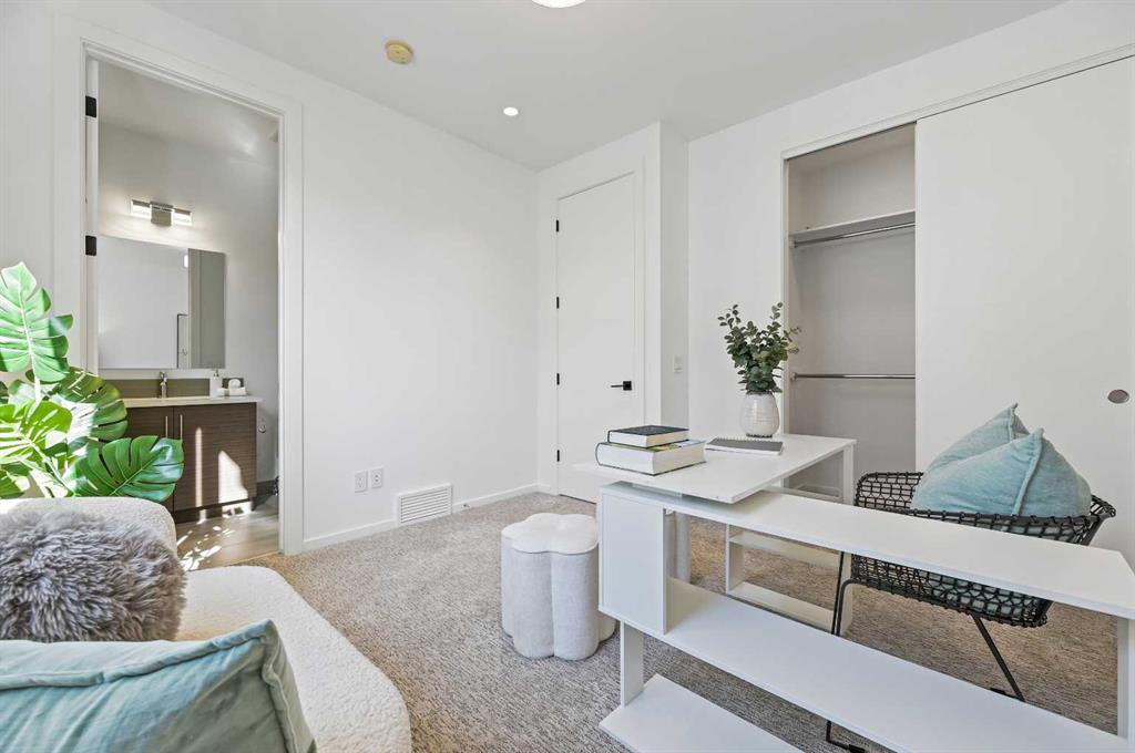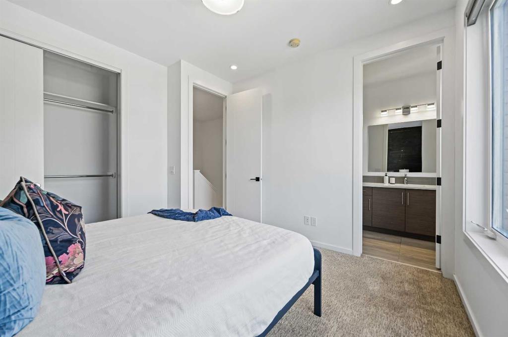 ATTENTION INVESTORS/PROFESSIONALS/DOG OWNERS/UPGRADERS/FIRST TIME HOME BUYERS - Stylish. Spacious. Sophisticated. **TURN KEY & MOVE IN READY KILLARNEY TOWNHOME WITH PRIVATE YARD** This exceptionally well-appointed 3-bedroom, 3.5-bath townhome offers over 1,600 sq ft of thoughtfully designed living space in one of Calgary’s most desirable inner-city communities. Each bedroom features its own private ensuite, providing a perfect blend of luxury and convenience for families, professionals, or guests. A bonus powder room on the main level adds everyday functionality. From the moment you step inside, the open-concept layout, soaring 9’ flat ceilings, and oversized interior doors create a sense of airiness and modern elegance. The modern kitchen features sleek modern cabinetry, waterfall quartz countertops, white oak engineered hardwood flooring, stainless steel appliances, and a glossy tile backsplash.