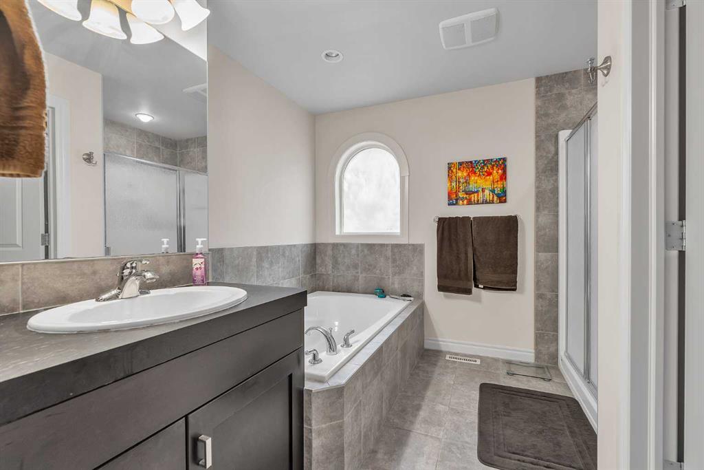 This beautiful 2,392 sq. ft. above-grade home welcomes you with an inviting open-to-above foyer and a spacious, well-designed main floor. Enjoy multiple living and entertaining spaces, including a living room, formal dining room, and a family room with a cozy gas fireplace. The bright, open kitchen offers a corner pantry, plenty of counter space, and a sunny breakfast nook with patio doors leading to a large backyard and a completed rear deck with elegant glass railing. Upstairs, the private primary suite features its own reading room with custom built-in bookcases adding both charm and functionality, a luxurious 4-piece ensuite, and a walk-in closet. Two generously sized bedrooms, a large bonus room, a full 4-piece guest bathroom, and a separate laundry room complete the upper level. Additional highlights include hardwood flooring throughout most of the main level; tile flooring in the foyer, laundry room, and all bathrooms; wrought-iron and maple railings. The unfinished basement features dual furnaces; and roughed-in plumbing—providing great future development potential. Close to ravine walking paths, and playgrounds nearby. Quick 5 minute commute to Beacon Hill shopping center, Creekside and Sage Hill shopping complexes. Don't miss your opportunity to call this your home!