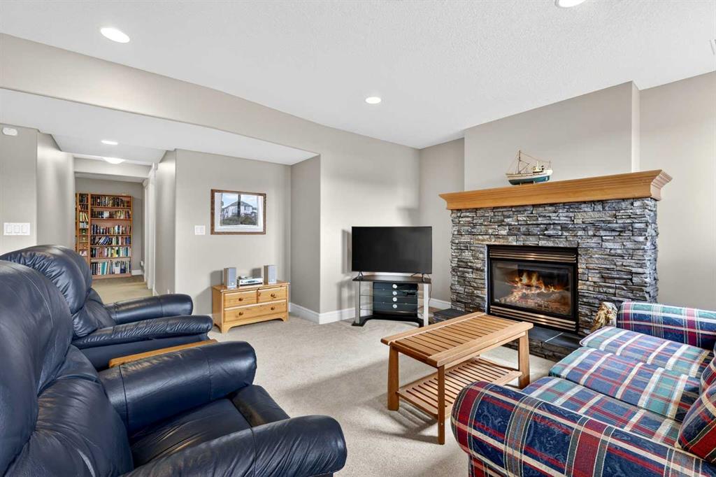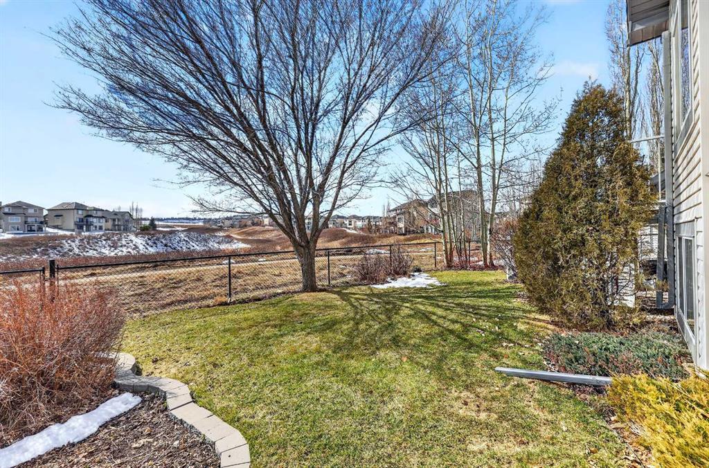 Set along a quiet pathway backing southwest onto a breathtaking ravine with no direct rear neighbours, this beautifully maintained home pairs refined finishes with an excellent layout. The original owners have loved this home with a superb level of pride of ownership - which is refreshing to view a home that actually shows 10/10! This large home features 3555 Sq Ft of developed living space and a bright main level where hardwood flooring extends throughout while crown molding introduces a polished, elegant presence across each principal space. Gather in the front living area where expansive windows invite natural light while establishing a welcoming setting suited to both quiet moments and conversation. Share meals in the dining area that comfortably accommodates everything from casual evenings to larger occasions beneath timeless lighting. Continue into the kitchen where extensive cabinetry, generous prep space, stainless steel appliances and a central island with seating keep daily tasks efficient and organized. Settle into the breakfast nook where surrounding windows capture backyard and greenspace ravine views while bringing in sunlight throughout the day. Relaxation awaits in the adjacent living room where a stone-faced fireplace and built-in shelving establish a warm focal point for downtime or hosting. Comfortably work from home in the enclosed main floor office where French doors and a coffered ceiling contribute both privacy and architectural character. Transition upstairs where a spacious primary retreat easily accommodates full-sized furnishings while incorporating a walk-in closet and a well-appointed ensuite bathroom that has recently been professionally updated complete with dual sinks, a deep soaker tub and a separate multi-head oversized shower. Two additional spacious and bright bedrooms and a full bathroom on this level introduce flexibility for family living or guests while maintaining separation from the main areas. Venture downstairs to a fully finished basement where a large recreation space with large bright windows adapts to movie nights, games or fitness while an additional oversized bedroom with a built-in desk area and walk-in closet is an ideal space for teens or guests, plus a spacious full bathroom that can effortlessly accommodate overnight visitors or extended family. Step outside to the backyard oasis that opens directly onto the pathway system with one of NW Calgary's best views, encouraging walks, bike rides, epic sunsets and outdoor enjoyment just beyond your door. Host summer barbecues on the expansive deck while kids and pets play in the beautifully manicured yard. Other notable features are remote blinds, central air conditioning, phantom screens (both front & rear), new roof (Owens Corning Duration shingles Class 3), in-floor heat roughed in for the basement, new kitchen tile, no touch kitchen faucet, duradeck and central vac. Experience a home that blends elegance, comfort and everyday practicality in a beautiful setting.