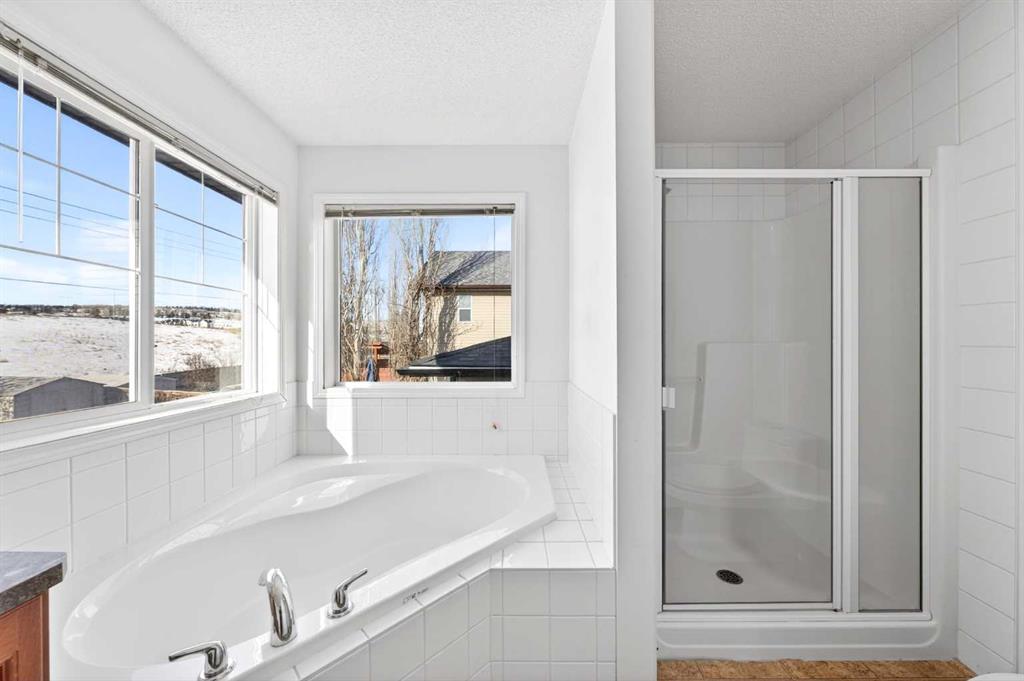 On the upper level, a spacious Bonus room with corner gas fireplace provides the perfect space for family gatherings, movie nights, or a kids' playroom. The generous Primary bedroom offers a peaceful retreat with a walk-in closet and 5-piece ensuite bath featuring double vanity, soaker tub, and separate shower. Two additional well-sized bedrooms share a 4-piece bath, and a convenient Laundry room completes this floor.