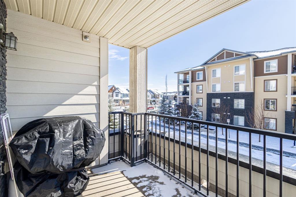 The open-concept layout features a generous living area that flows seamlessly onto a large private balcony, perfect for relaxing or entertaining. The kitchen is equipped with granite countertops and stainless steel appliances, providing both style and functionality.