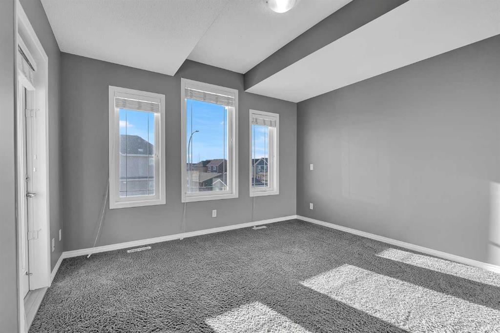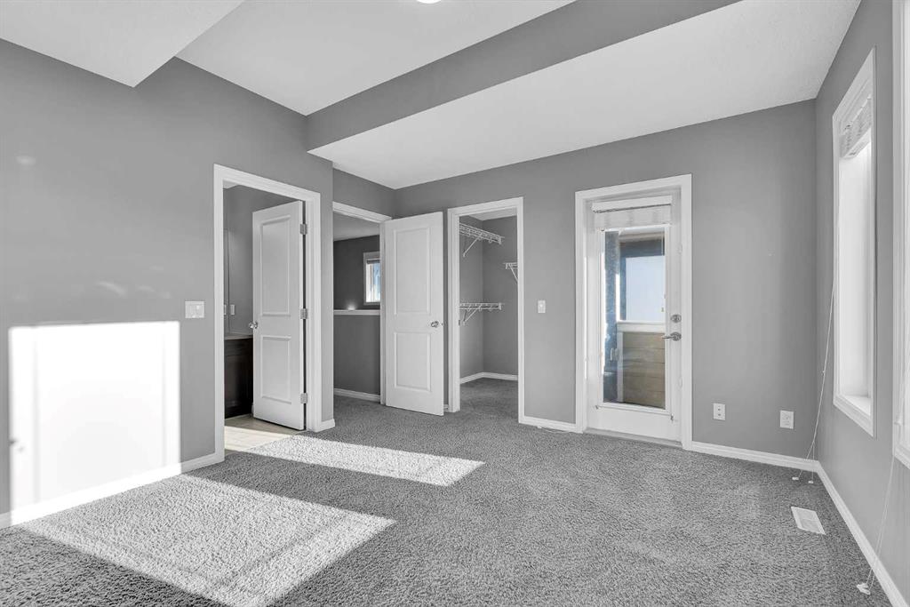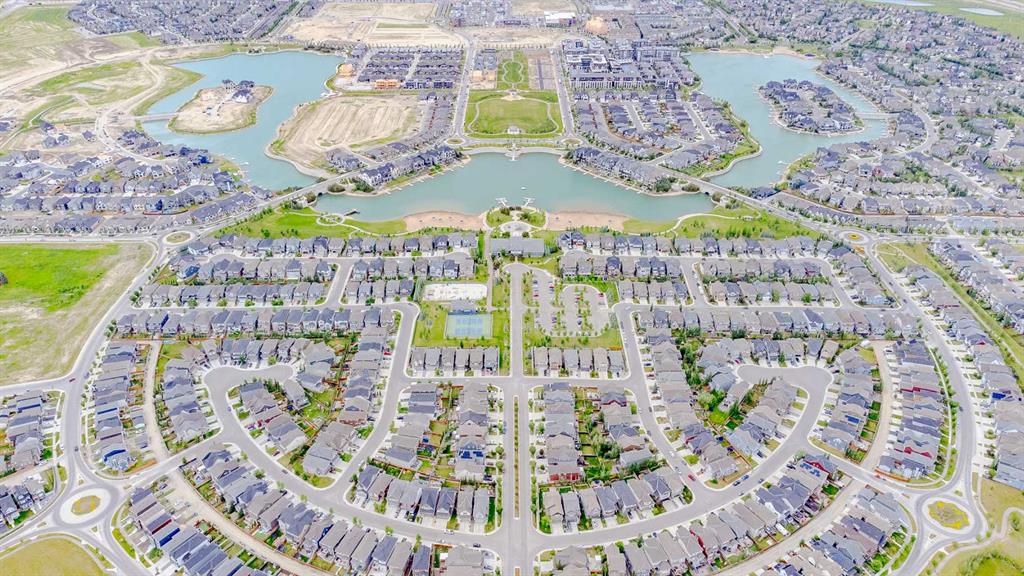 Modern upgrades and bright, functional living come together in this fully finished and MOVE-IN READY 2-storey detached home in the award-winning lake community of Mahogany. Offers 3+1 bedrooms, 3.5 bathrooms, a double detached garage, a fully developed basement and fresh paint throughout. Central A/C for those hot summer days. Quick possession available! The open-concept main floor is warm and welcoming, featuring a sun filled-living room with 9 ft ceilings and brand new carpet. a well-appointed central kitchen with a large quartz island, ample cabinetry, generous counter space, and SS appliances including a brand new fridge. Spacious dining area opens directly onto a huge 12x20 deck—perfect for summer BBQs, outdoor dining, or relaxing evenings in the private and fenced backyard (no neighbours behind). A convenient 2-pc bathroom completes the main level. Upstairs, the primary bedroom offers a private retreat with a walk-in closet and 4-piece ensuite, and a sunny balcony is great for morning coffee or reading a book. Complemented by 2 additional bedrooms and another full bath on this level. The fully developed basement adds excellent versatility with a large family/rec room, a 4th bedroom, and a 4pc bath—ideal for guests or a home office. Lots of storage space in the mechanical room and under the stairs. Outside, the backyard leads to the double detached garage, providing both parking and extra storage. Ideally located with easy access to Mahogany’s lake and beaches, residents enjoy amazing four-season amenities, plus access to nearby schools, parks, playgrounds, scenic pathways, and quick access to Mahogany Village Market, shopping, restaurants, transit, and major roadways. An outstanding opportunity to enjoy lake living at its best!
