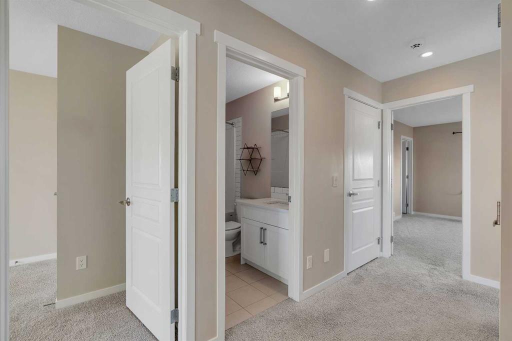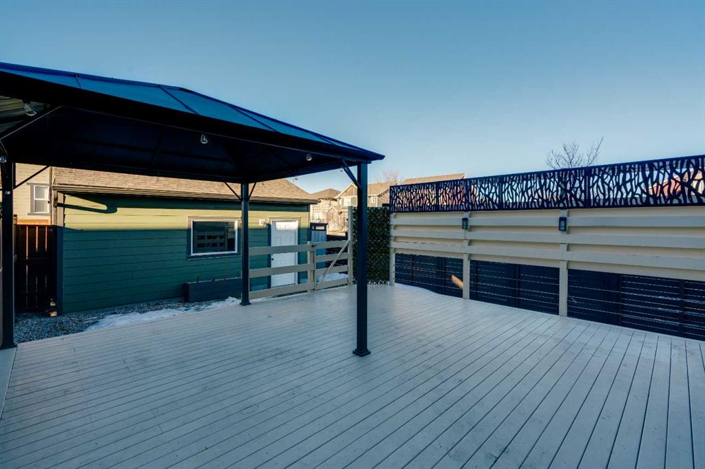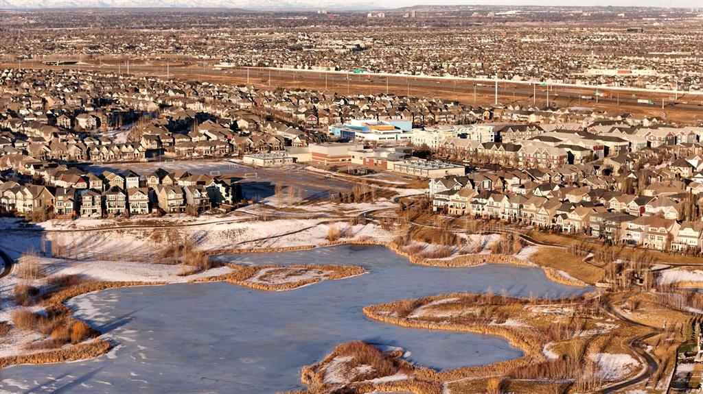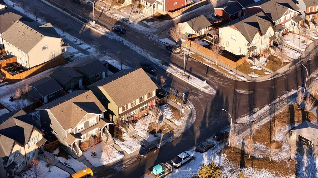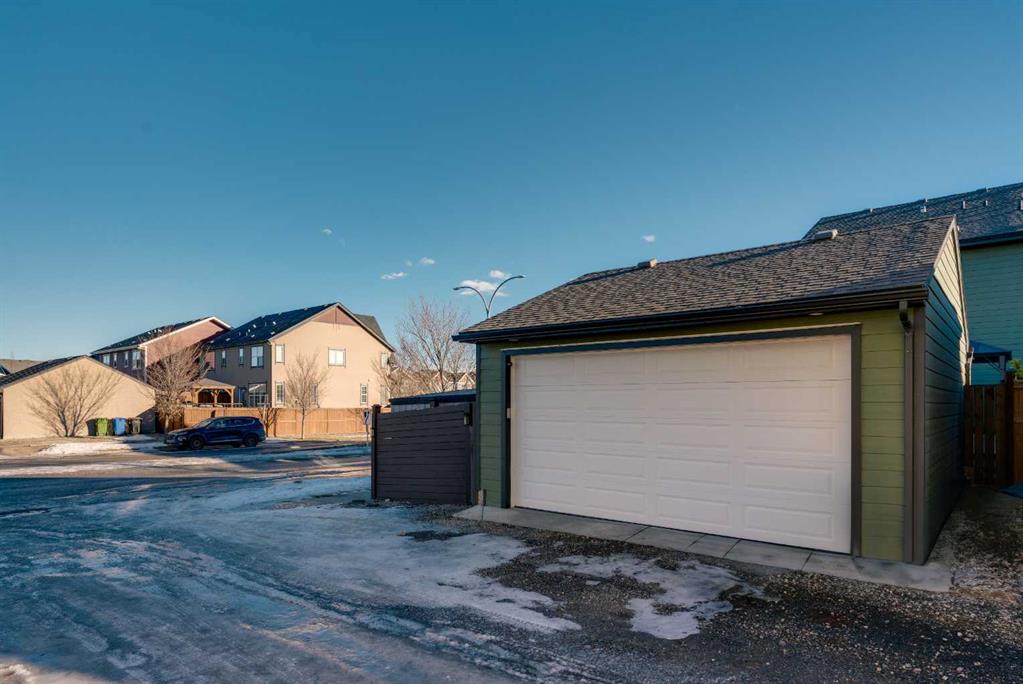 Positioned on a coveted corner lot directly across from green space, a picnic area, and a playground, this beautifully designed Mahogany home offers an elevated lake community lifestyle with comfort and functionality at its core. Oversized windows flood the open main level with natural light, highlighting durable LVP flooring, designer lighting, and a layout built for both daily living and entertaining. A front-facing dining area captures peaceful park views, while the kitchen features quartz countertops, stainless steel appliances, timeless subway tile, and a large breakfast bar island ideal for casual meals and gatherings. The living room overlooks the sunny west-facing yard through corner windows, creating a relaxed space for evenings at home. A conveniently located powder room near the rear entry adds everyday practicality. Upstairs, the primary retreat feels private and calm with corner windows, a walk-in closet, and a stylish 3-piece ensuite. Two additional well-sized bedrooms share a 4-piece bathroom, and upper-level laundry provides added convenience. Outdoor living shines in the west-facing backyard with a spacious 20x20 deck complete with pergola and privacy screens, offering both sun and shade for entertaining or relaxing. A gas line for the barbecue, a grassy play space, a double detached garage with 60-amp service, and a storage shed complete the yard. Central air conditioning ensures summer comfort, while the undeveloped basement offers excellent future potential. Located in the heart of Mahogany, Calgary’s premier four-season lake community, residents enjoy walking access to the main beach, the residents-only Beach Club, and over 20 acres of beaches, wetlands, and pathways, with shops, restaurants, schools, parks, and playgrounds all thoughtfully integrated nearby for a connected and active lifestyle.