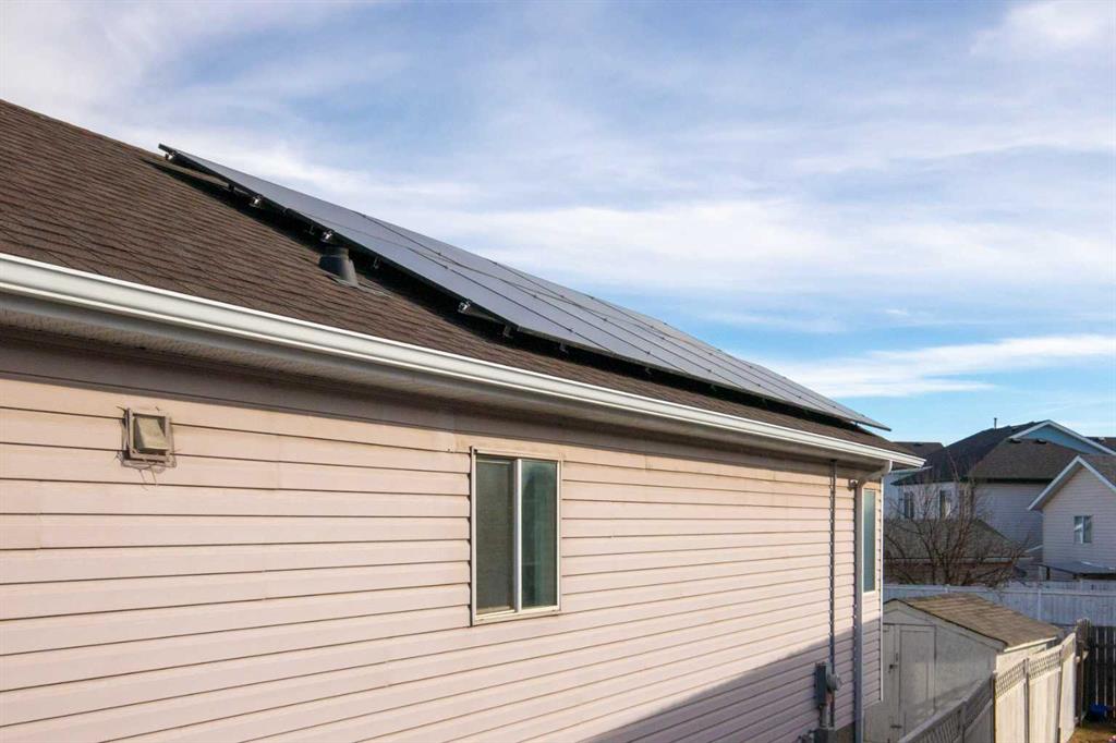 ORIGINAL OWNERS. THIS HOME FEATURES BEAUTIFUL CURB APPEAL, GRACED WITH TWIN ROMAN PILLARS AND A BAY WINDOW. A VERY POPULAR FORMER DESCON HOMES SHOWHOME. IN THE FALL OF 2025 THE SELLER INVESTED NEARLY $50,000 TO ENJOY THE EFFICIENCY OF A MODERN 11 PANEL SOLAR SYSTEM. THIS SYSTEM POWERS THE HOUSE AND THE EXTRA POWER GOES BACK TO THE GRID!!! . Three bedrooms up. The Primary Bedroom includes a Closet Organizer; a Private 2-pce ensuite in the with cultured marble sink and modern Dual-Flush toilet. The Main 4-pce bath is enhanced with Telephone Shower Head; Also features Cultured Marble Sink; Ceramic Tiled Floor and Tub Surround also Dual-Flush toilet. The Kitchen and dining room features Ceramic Tiled Floor. The Kitchen also features Double Stainless Steel Sink and Vented Hood Fan. A Walk-in-Pantry; SAMSUNG CERAMIC TOP STOVE WITH VENTED HOOD FAN; 3-DOOR LG FRIDGE WITH BOTTOM FREEZER; WHIRLPOOL DISHWASHER. The Dining Room just off the Kitchen over looks the Very Popular Lower Living Room with 16' Ceiling. The Bay Window enchaces the the flow of light into this Main & Lower floor. COZY BBQ DECK OFF DINING ROOM. The VERY OPEN FULLY DEVELOPED Lower Level could possibly give the buyer the opportunuty to Modify the Living Room to a Traditional Main Floor LIVING Room and create a Lower Basement Suite with City Of Calgary Approval. Currently a Spectacular 16' Vaulted View from Lower Living Room. ENJOY THE EXTRA LARGE RECREATION ROOM DOWN. THE UTILITY ROOM/LAUNDRY ROOM FEATURES A SAMSUNG FRONT LOAD WASHER AND A PROFILE DRYER. The home is also updated with some Newer Lights; Newer Furnace & Hot water Tank; 4-Ceiling fans and the Shingles were replaced in 2019. THE SPACIOUS SOUTH FACING YARD WITH TWO STORAGE SHEDS. Located opposite a Cul-de-Sac with a Cute Park. Great Location; On a bus Route; East access to 68 Street; Stony Trail and Trans Canada Highway. Monterey Park is a Very Popular and well Liked Residential Area with School and Community Centre very Close at hand. Easy access and mere Minutes to Popular SUNRIDGE MALL; Monterey Park and Village Square Shopping Complex. Village Square features a Swimming Pool; COSTCO; MARLBOROUGH MALL AND EAST HILL SHOPPING CENTRE.