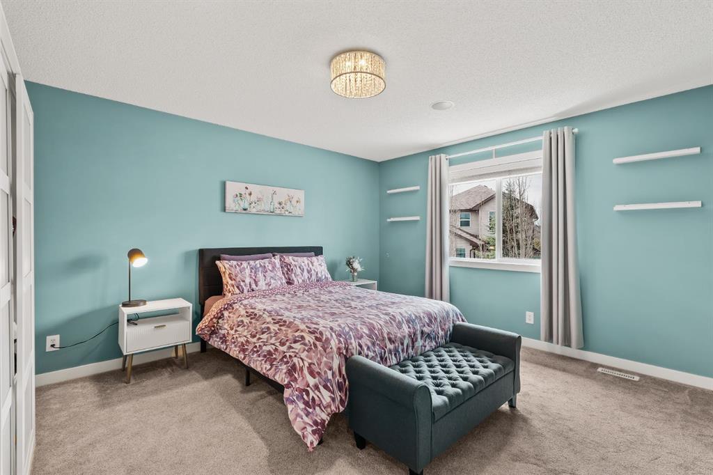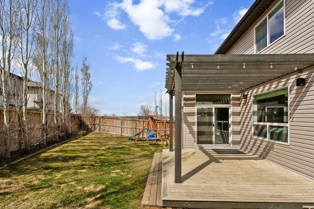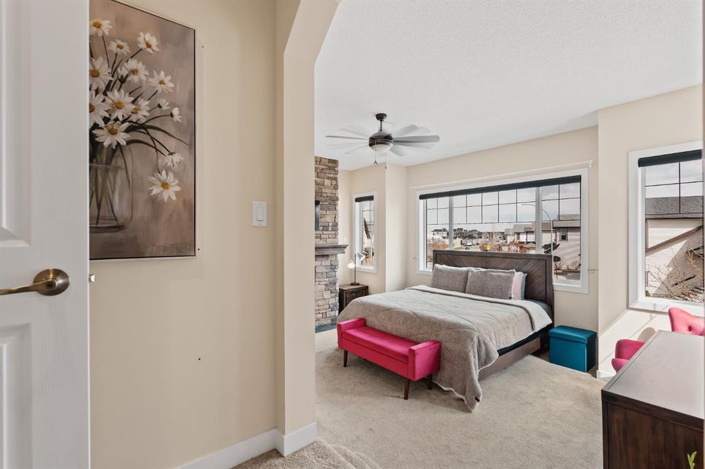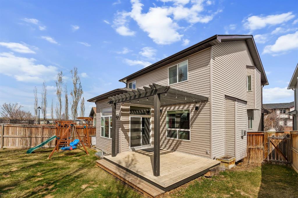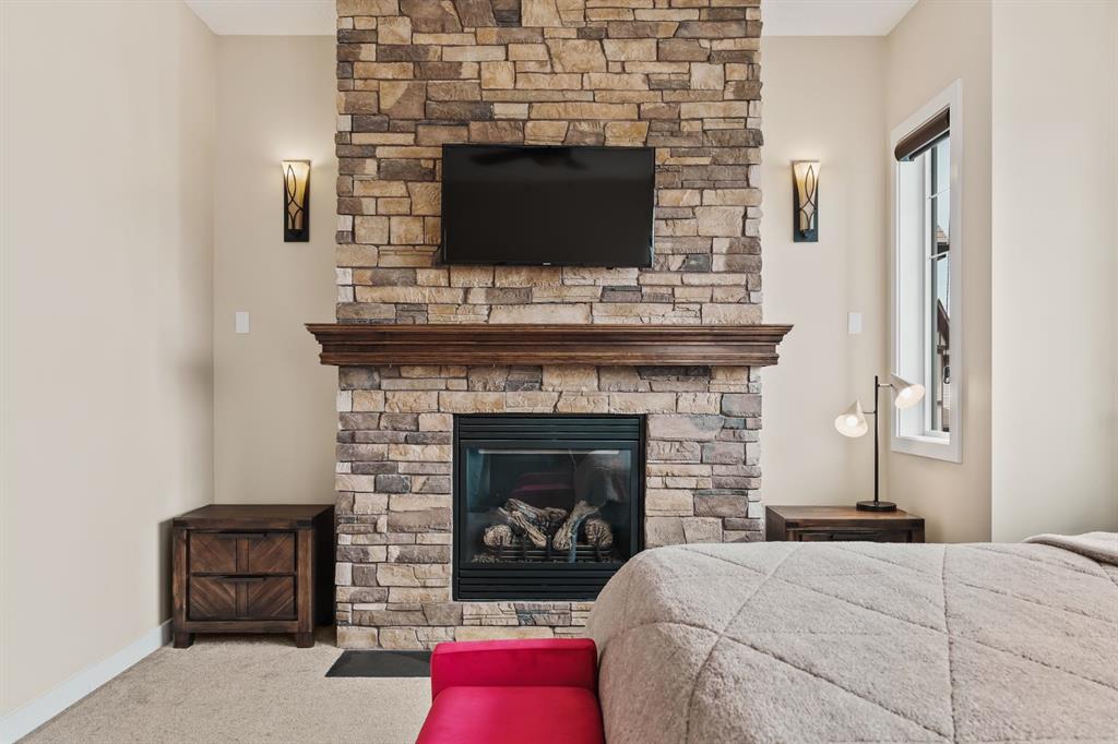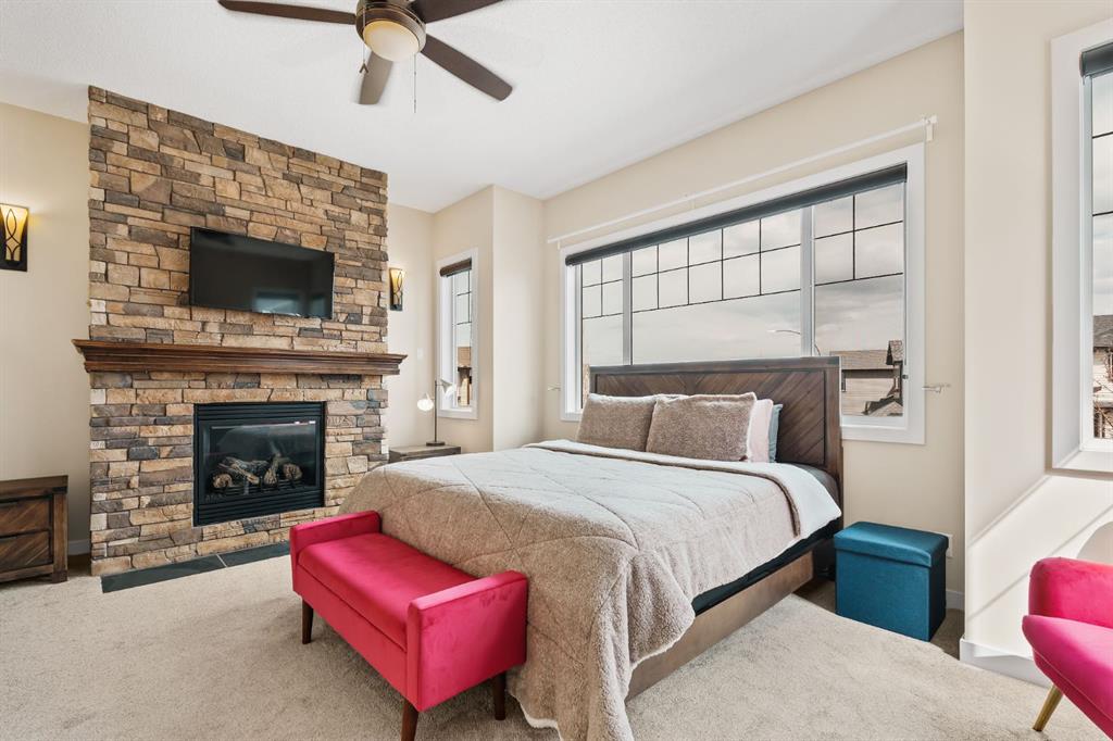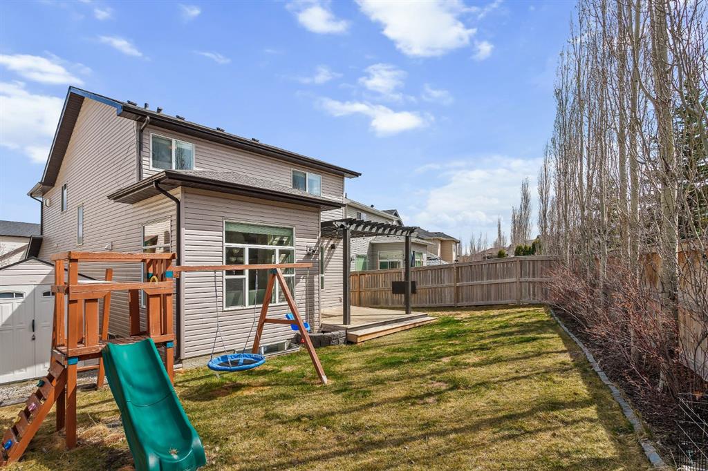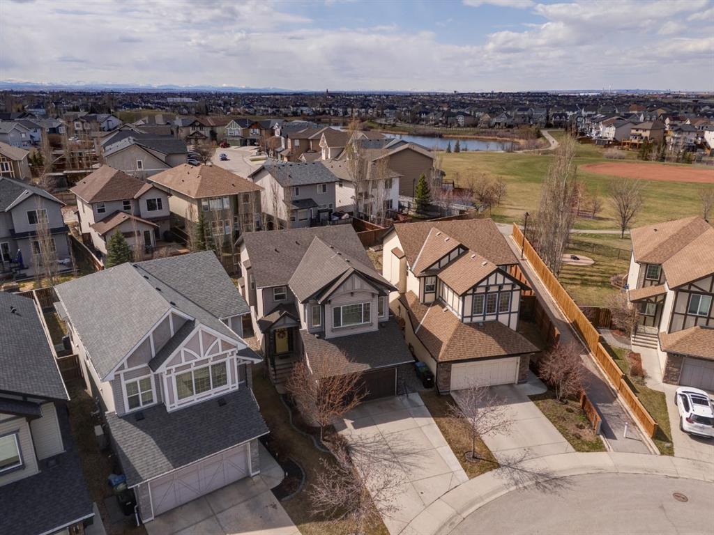 Welcome to this beautifully appointed, fully developed home offering over 3,000 sq. ft. of refined living space, ideally situated on a massive pie-shaped lot just steps from lush green space and the picturesque pond. Perfectly nestled between an elementary and middle school, this property is a dream for growing families seeking comfort, space, and convenience. Step inside to discover a thoughtfully designed main floor featuring 9-ft ceilings, rich hardwood floors and a private front den ideal for working from home. The cozy living room centers around a striking stone gas fireplace, perfect for relaxing evenings. A formal dining room with soaring ceilings and wall-to-wall windows bathes the space in natural light, creating a stunning setting for entertaining. The chef’s kitchen is as functional as it is stylish, boasting granite countertops, stainless steel appliances, a corner pantry, extended-height cabinetry and a large central island complete with a built-in wine rack. A main floor laundry room with newer washer and dryer adds everyday ease. Upstairs, you’ll find newer carpeting with upgraded underlay, four spacious bedrooms, and a luxurious primary retreat featuring a second gas fireplace, a 5-piece ensuite with dual sinks, a walk-in closet, and spa-inspired finishes. An additional 4-piece bathroom completes this level. The fully finished basement offers versatile living with a large recreation room, full bathroom, bonus den, and room to add a future 5th bedroom—ideal for guests or extended family. Step into your private backyard oasis with a pergola-covered deck, children’s playset, and low-maintenance landscaping bordered by mature privacy trees—an ideal spot for outdoor enjoyment. This home is loaded with upgrades, including air conditioning, a brand new furnace, brand new premium tankless water heater and water softener, built-in speakers as well as a Nest thermostat and doorbell camera. The roof was also updated in 2020. With unmatched location, generous space and premium features throughout, this is a rare opportunity to own a truly exceptional home in one of Calgary’s most family-friendly communities.