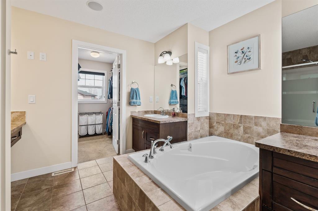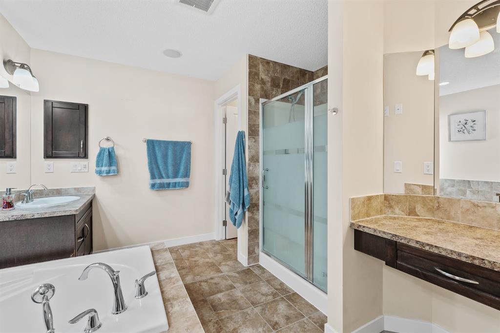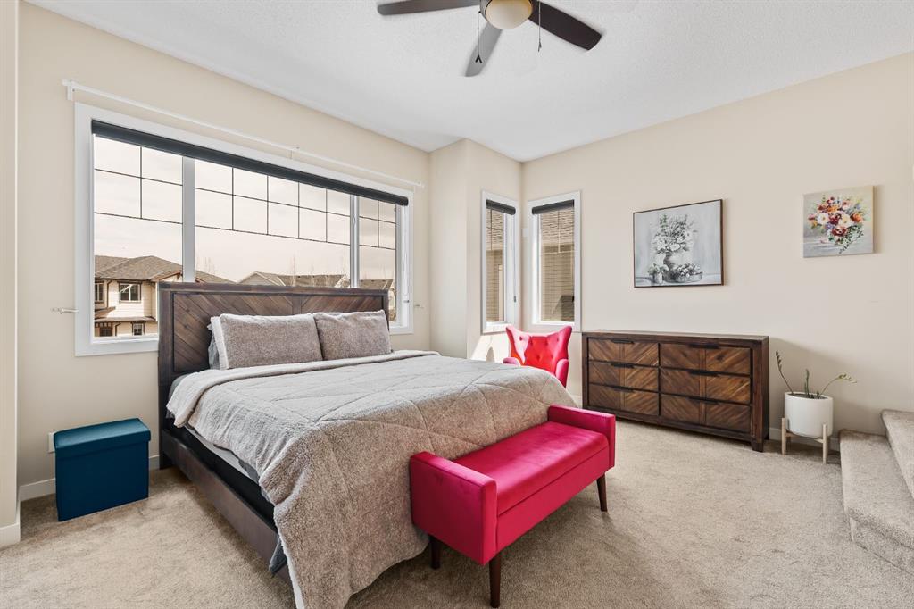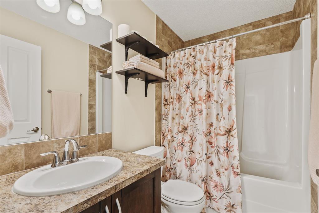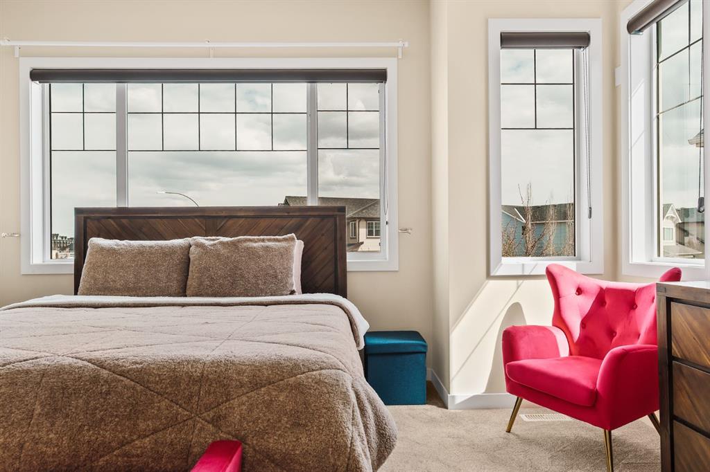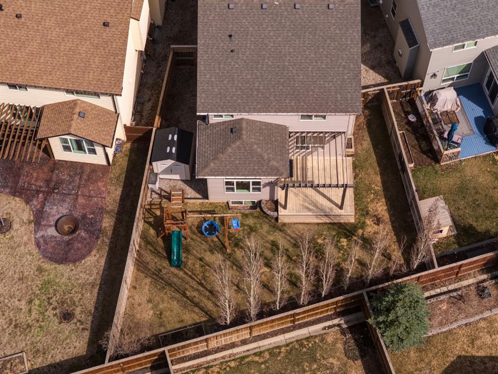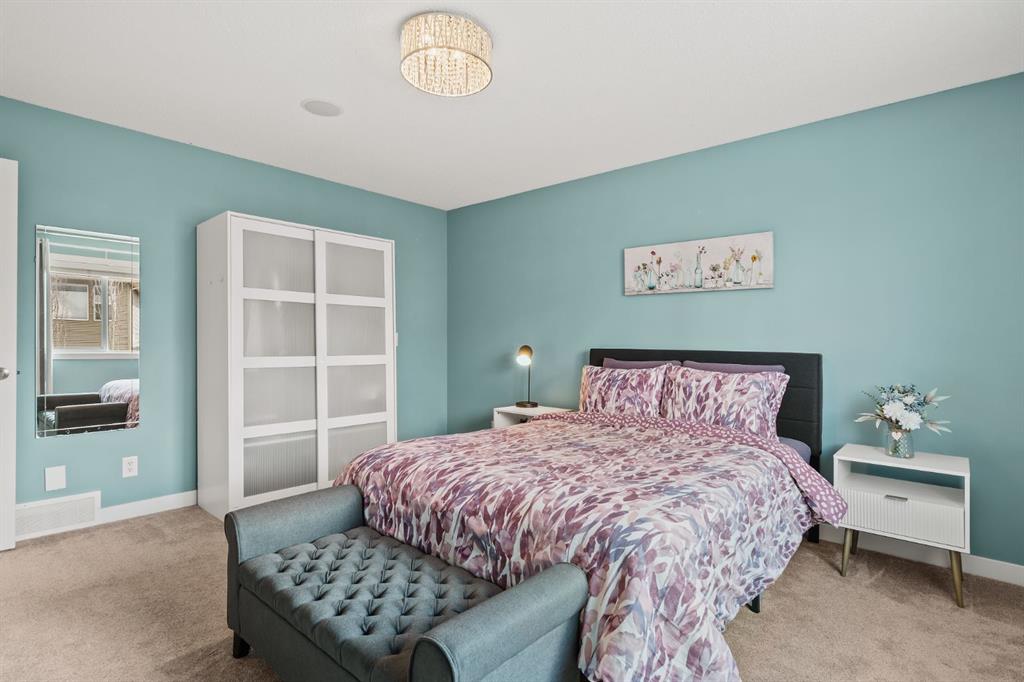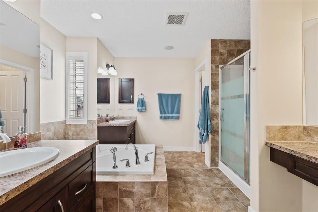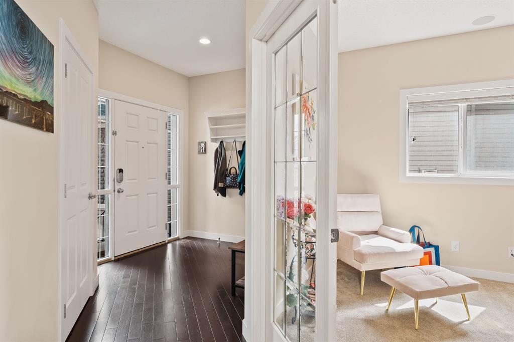 Welcome to this beautifully appointed, fully developed home offering over 3,000 sq. ft. of refined living space, ideally situated on a massive pie-shaped lot just steps from lush green space and the picturesque pond. Perfectly nestled between an elementary and middle school, this property is a dream for growing families seeking comfort, space, and convenience. Step inside to discover a thoughtfully designed main floor featuring 9-ft ceilings, rich hardwood floors and a private front den ideal for working from home. The cozy living room centers around a striking stone gas fireplace, perfect for relaxing evenings. A formal dining room with soaring ceilings and wall-to-wall windows bathes the space in natural light, creating a stunning setting for entertaining. The chef’s kitchen is as functional as it is stylish, boasting granite countertops, stainless steel appliances, a corner pantry, extended-height cabinetry and a large central island complete with a built-in wine rack. A main floor laundry room with newer washer and dryer adds everyday ease. Upstairs, you’ll find newer carpeting with upgraded underlay, four spacious bedrooms, and a luxurious primary retreat featuring a second gas fireplace, a 5-piece ensuite with dual sinks, a walk-in closet, and spa-inspired finishes. An additional 4-piece bathroom completes this level. The fully finished basement offers versatile living with a large recreation room, full bathroom, bonus den, and room to add a future 5th bedroom—ideal for guests or extended family. Step into your private backyard oasis with a pergola-covered deck, children’s playset, and low-maintenance landscaping bordered by mature privacy trees—an ideal spot for outdoor enjoyment. This home is loaded with upgrades, including air conditioning, a brand new furnace, brand new premium tankless water heater and water softener, built-in speakers as well as a Nest thermostat and doorbell camera. The roof was also updated in 2020. With unmatched location, generous space and premium features throughout, this is a rare opportunity to own a truly exceptional home in one of Calgary’s most family-friendly communities.