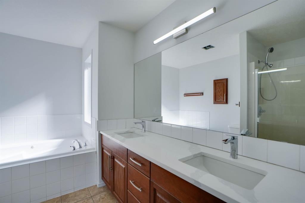 Beautifully updated corner lot home ideally located near schools, parks, a library, and shopping. This move-in ready property features fresh paint, brand new carpets, stylish laminate flooring, and a spacious kitchen with elegant quartz countertops. The main floor offers a bright living room, dining area, open-aspect office, powder room, and convenient laundry room. Upstairs, enjoy a generous bonus room, a full bathroom, and three spacious bedrooms including a luxurious primary suite with a soaker tub, double sinks, separate shower, and large walk-in closet. A perfect blend of comfort, style, and convenience!