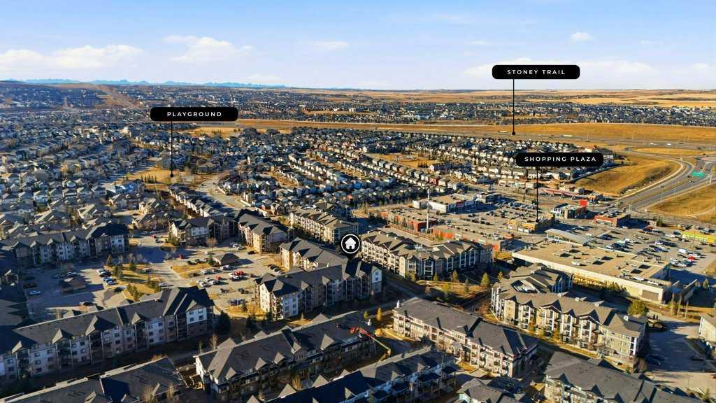 Welcome to Panorama Hills, one of the most desirable communities in Northwest Calgary, a friendly, welcoming neighbourhood with unbeatable convenience. Enjoy walking distance to amenities, excellent schools, parks, and pathways. This bright third-floor condo features an open-concept floor plan and is flooded with natural light. The unit opens to a spacious foyer with a large mirrored closet, leading into a generous dining area that easily accommodates a table for 4–6. The corner kitchen offers ample cabinetry and flows seamlessly into a large, inviting living room.
