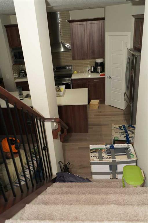 Welcome to this upgraded 2020-built home in the desirable community of Redstone. Recently enhanced with central air conditioning, this property offers a functional layout with modern finishes throughout. The main floor features a bright foyer, versatile flex room, open-concept living space with a gas fireplace, and a kitchen complete with quartz countertops, stainless steel appliances, corner pantry, and a large island. A 3-piece bathroom completes the main level.