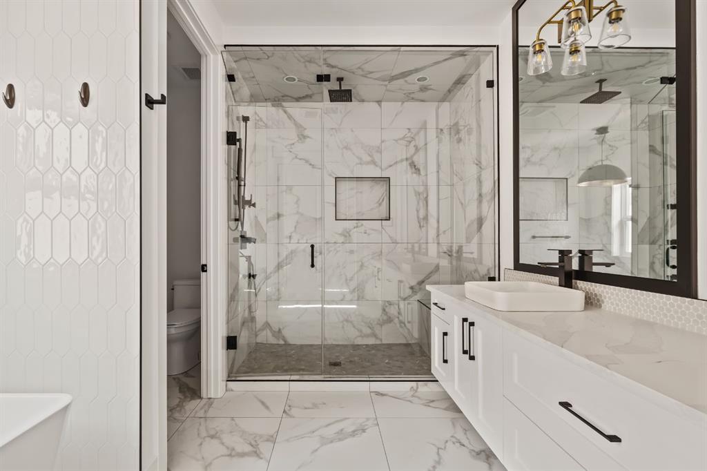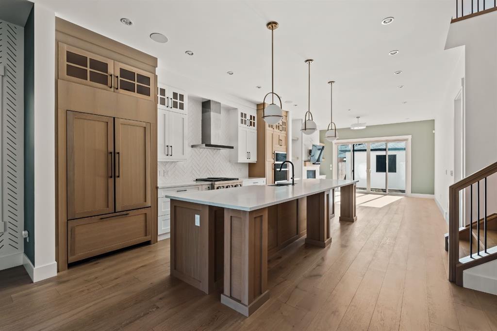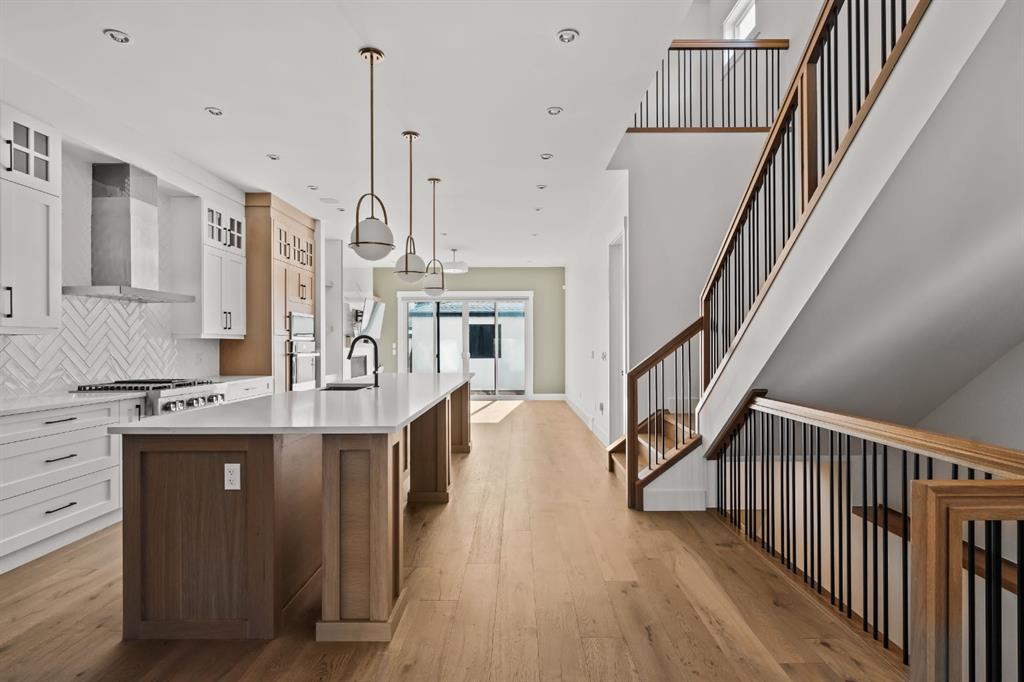 Welcome to this exceptional detached luxury infill offering over 3,500 sq.ft. of beautifully developed living space in the sought-after inner-city community of Richmond. Thoughtfully designed and impeccably finished, this residence sits on a rare 30’ wide lot and showcases timeless architecture paired with elevated modern design. The main level is defined by soaring 10-foot ceilings, wide plank hardwood flooring, and sophisticated custom millwork, creating an atmosphere that feels both refined and inviting. At the heart of the home is a stunning chef-inspired kitchen, complete with a large quartz island, striking two-tone custom cabinetry, and premium JennAir appliances. A well-appointed butler’s pantry adds both convenience and additional storage, making entertaining effortless. The elegant dining area seamlessly connects to the sun-filled great room, where a gas fireplace framed by custom built-ins creates a warm focal point for gatherings. Expansive dual sliding doors open to the south-facing backyard and patio, offering the perfect extension of the living space for outdoor entertaining and quiet summer evenings. A private main floor den provides an ideal setting for a home office or study, while a thoughtfully designed mudroom ensures everyday functionality. Upstairs, the serene primary retreat offers a true sense of escape, complete with a spa-inspired ensuite featuring heated floors, a fully tiled walk-in shower, deep soaker tub, and elegant dual vanities. Two additional bedrooms, a beautifully finished main bath, convenient upper laundry, and a versatile loft area complete the upper level. The fully developed lower level is designed with entertaining in mind, featuring a spacious recreation room with custom built-in media storage, a wet bar with wine cooler, and ample room to host family and friends. An additional bedroom, full bathroom, and flexible bonus room—perfect as a home gym, studio, or office—enhance the home’s functionality. Additional features include Hunter Douglas blinds, integrated smart home lighting and thermostat controls, central air conditioning, HRV system, high-efficiency furnace, and upgraded mechanical systems. ALL TV's, Mounts and SONOS Soundbars INCLUDED. The property is completed by a fully insulated and heated detached garage and paved rear lane. Ideally located on a quiet street just minutes from Marda Loop, River Park, top-rated schools, shopping, and downtown, this beautifully crafted home delivers the perfect balance of luxury, comfort, and inner-city convenience. Immediate possession available!