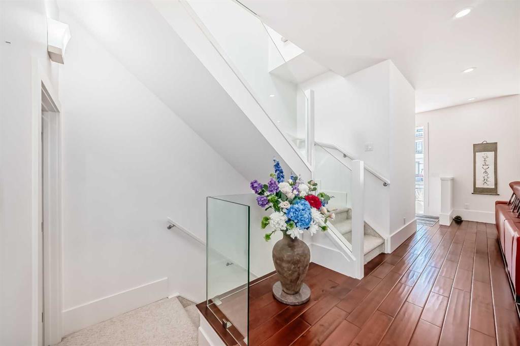 Boasting over 2,800 sq.ft. of total living space, this home features a stylish stucco exterior and a bright South-facing front exposure. The main floor showcases elegant hardwood flooring throughout, enhanced by abundant pot lights and a contemporary open-concept design.