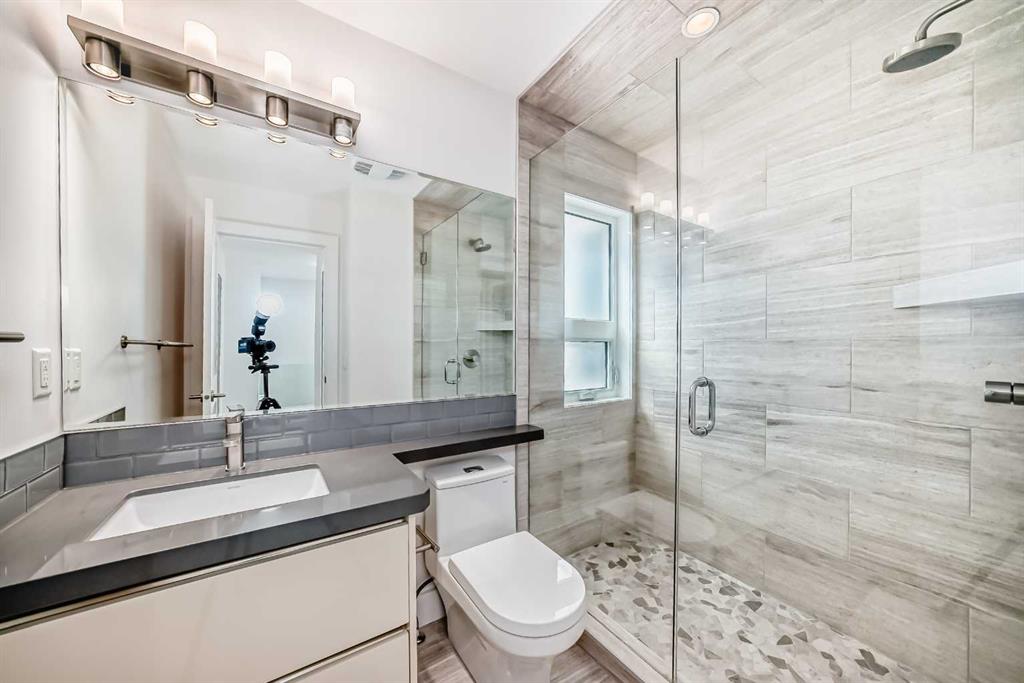 The professionally developed basement offers a spacious recreation area with ample pot lighting, an additional bedroom, and a full bathroom—ideal for guests or extended family. The utility room includes a high-efficiency furnace and central vacuum system.