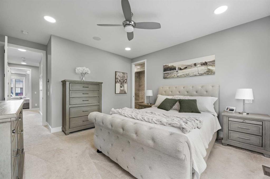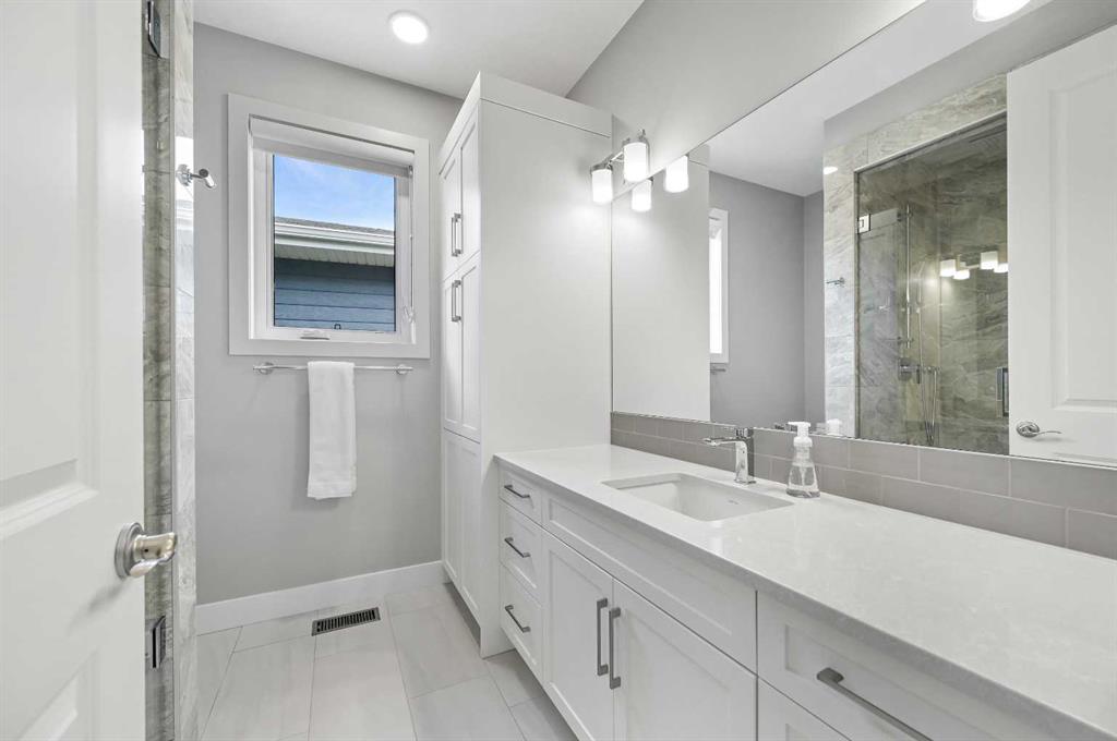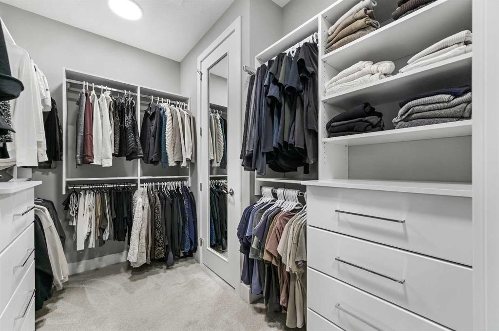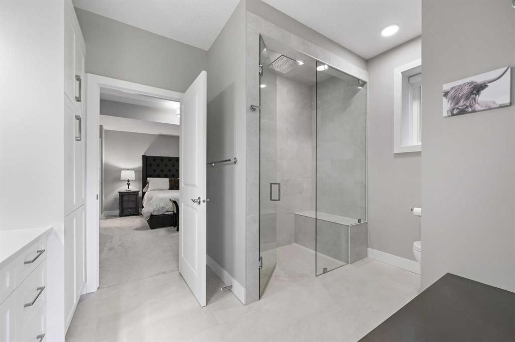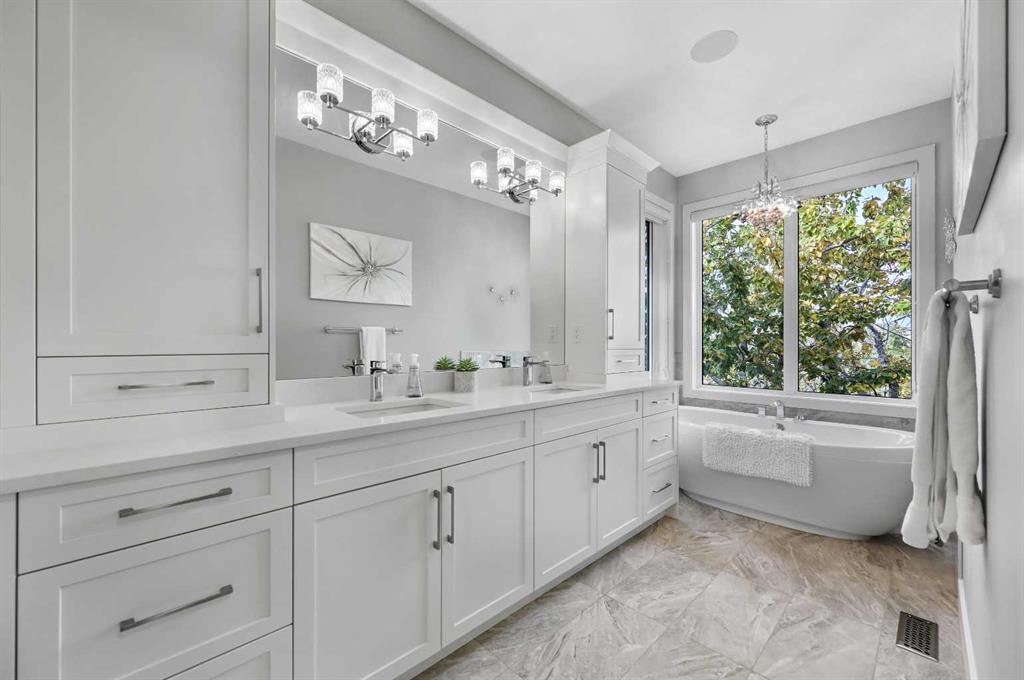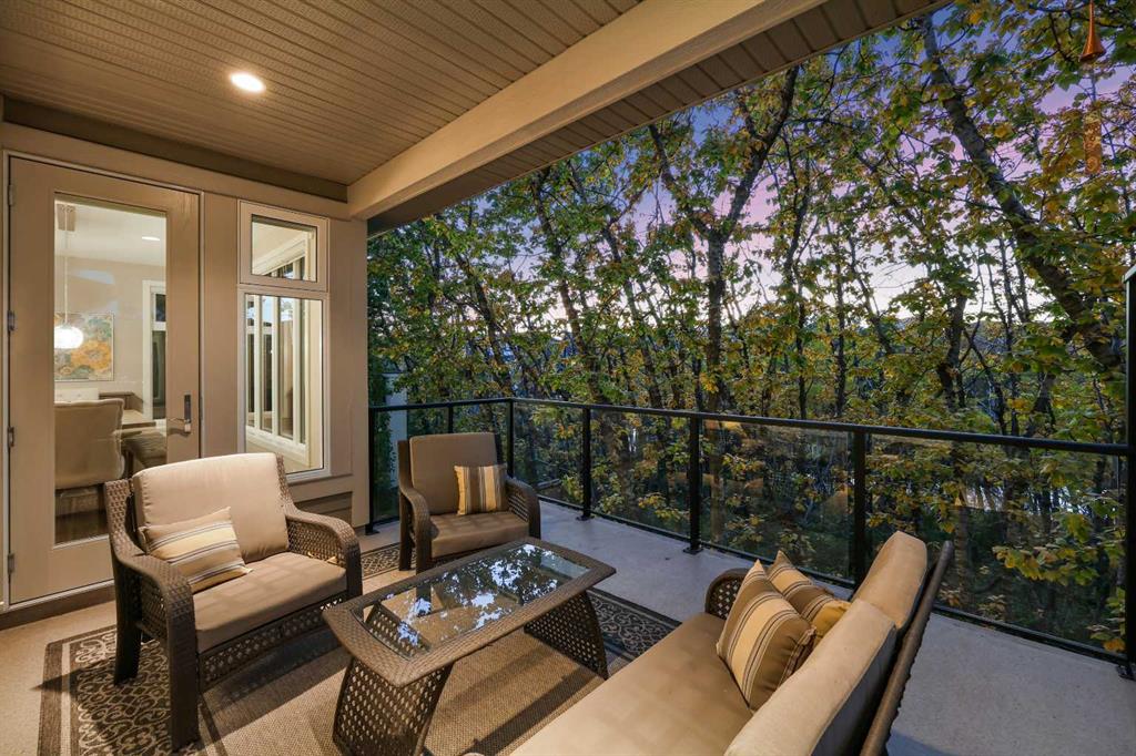 Welcome to this exceptional estate home crafted by Lupi Homes, ideally located in the highly sought-after community of Rock Lake Estates. Enveloped by mature trees, this residence offers over 4,000 sq ft of refined living space, where timeless design meets peaceful, nature-filled views and the quiet charm of the nearby lake. Step inside to soaring 9-foot ceilings, expansive windows, and timeless finishes. The main floor unfolds with a bright living room, framed by large picture windows that showcase serene views of the surrounding trees and glimpses of the lake beyond, flowing seamlessly into a spacious dining area ideal for entertaining. The chef’s kitchen impresses granite countertops, a massive central island, and premium appliances—including a built-in KitchenAid induction cooktop, built-in stainless steel hood fan, double wall ovens and microwave, Samsung smart refrigerator and a Frigidaire Gallery upright freezer. Thoughtful storage includes a walk-in and prep pantry, both with custom shelving and a built-in spice rack. Completing the main level are a private office, a 2-piece bath, and a well-designed mudroom with built-in bench and cabinetry. Upstairs, a welcoming family room and bonus area provide space to unwind. The primary suite offers a luxurious retreat with a spa-inspired 5-piece ensuite featuring heated floors, quartz counters, and a curbless tiled shower. Two additional bedrooms each include built-in benches and share access to a charming “secret room” hidden between them— perfect for play, additional bedroom, or nanny space. Both bedrooms have their own ensuite, with one offering dual access from the bedroom and main living area for added convenience. The fully developed lower level continues the elegant feel, offering a spacious recreation area with built-in wet bar and Marvel bar fridge, an exercise room, a fourth bedroom, a 3-piece bath, and abundant storage. A separate entrance leads to the private covered patio and west-facing backyard—an ideal setting for relaxing evenings surrounded by mature trees and natural scenery. Throughout the home, custom built-ins add both beauty and practicality—from vanities and closets to shelving and pantry organization. The garage is roughed for heat and plumbing for a future dog wash, with epoxy flooring for a polished finish. Additional highlights include two furnaces (one with a new motor), Ecobee smart thermostats, a roughed-in speaker and central vacuum system, and a modern security setup. Nestled within Rock Lake Estates in Rocky Ridge, this home offers a perfect balance of natural beauty and urban convenience. Everyday essentials, cafés, and restaurants are just five minutes away at Royal Oak Centre. Families will value the proximity to highly rated schools, including William D. Pratt and Royal Oak School, both under ten minutes from the home. For recreation, the YMCA is only a short drive, featuring a full aquatic centre, fitness facilities, and year-round programs.