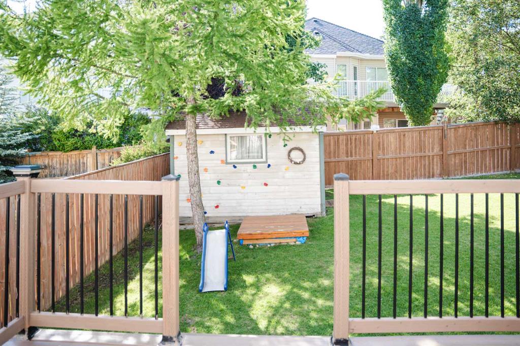 Rare 4-Level Split in Rocky Ridge and Royal Oak – Over 2,250 sq. ft. of living space! This beautifully maintained home with double attached garage is perfectly situated at the end of a quiet cul-de-sac with a park and green space right across the street. This home is within walking distance to the Tuscany LRT station and the Rocky Ridge Ranch House with its activity rooms, children’s pool, tennis and basketball courts. The main floor is bright and inviting with hardwood floors, vaulted ceilings, and large windows that flood the living and dining areas with natural light. The kitchen features a 10' ceiling, stainless steel appliances, an oversized pantry, and a sunny eating nook overlooking the 3rd level. The 3rd level offers a cozy family room with a corner fireplace, a 3rd bedroom, and a full bathroom. Upstairs, you’ll find two spacious bedrooms, each with its own bathroom, including the primary suite with walk-in closet and private ensuite. The fully finished basement includes a large rec room, office space, laundry, and ample storage. Outside, enjoy a large west-facing backyard with a deck and storage shed. Recent updates include triple-pane windows, hot water tank, and refreshed bathrooms with new vanities, toilets, and vinyl plank flooring. This is a fantastic family home in a great location with wonderful neighbors — a true gem in the border of Rocky Ridge and Royal Oak!