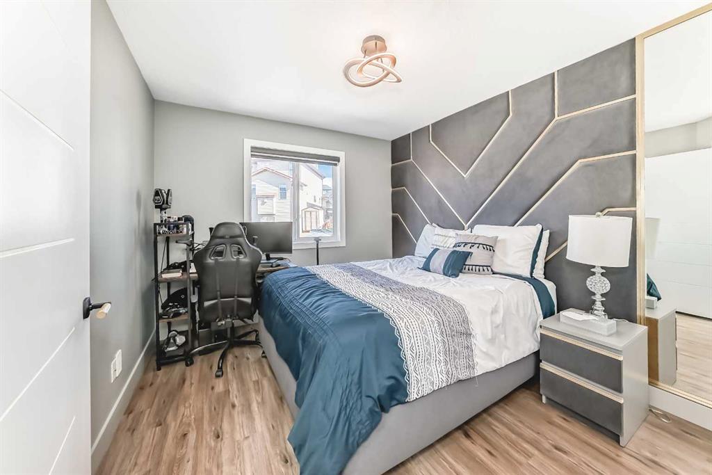 *** $450,000 IN RENOVATIONS - MASSIVE LOT*** METICULOUSLY REDESIGNED WITH A REFINED, HIGH-END DESIGNER TOUCH HOME IN BEAUTIFUL ROCKY RIDGE - Step into this beautifully reimagined luxury residence in the highly desirable Rocky Ridge neighborhood, offering 5 bedrooms, 3.5 bathrooms, and approximately 4,200 sq. ft. of thoughtfully finished living space, all set on an expansive 8,500 sq. ft. pie-shaped lot. From the moment you enter, you’re welcomed by striking architectural details, including elegant column accents and custom wall treatments, leading into a breathtaking living area highlighted by a dramatic full-height fireplace, oversized windows, and automated window coverings. The gourmet kitchen is designed to impress, featuring bespoke cabinetry, granite countertops, premium appliances, and a convenient walk-through pantry that connects directly to the oversized heated garage. The main level is complete with a private office and two refined dining spaces, perfect for both everyday living and entertaining. Upstairs, a bright and airy bonus room with vaulted ceilings offers stunning mountain views. The primary retreat provides a luxurious escape, complete with a spa-like ensuite and a custom-designed walk-in closet. Three additional bedrooms are uniquely designed with built-in sleeping arrangements, including an innovative double-bed setup. The fully finished lower level features a remarkable illegal suite, complete with its own full kitchen, generous living space, upscale bathroom, and a custom walk-in closet, ideal for extended family living or potential rental income. Additional upgrades include built-in audio, in-floor heating, air conditioning, solar-powered smart blinds, motion-activated stair lighting, central vacuum, smart toilets, a newer hot water tank, and a water filtration system. Furnishings are negotiable, offering the option for a seamless, fully furnished move-in. Residents also enjoy exclusive access to Rocky Ridge Ranch amenities, including water activities, sports courts, a splash park, playground, clubhouse, skating, fitness programs, and year-round community events. This exceptional home offers a rare combination of refined European-inspired design and modern functionality in one of northwest Calgary’s most sought-after communities. Schedule your private showing today!