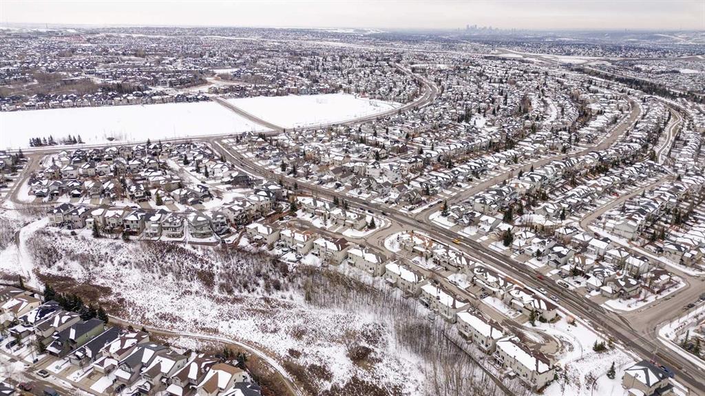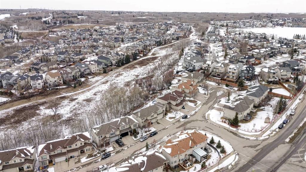 What a fantastic opportunity to own this beautifully maintained, no-pet, non-smoking attached home in the desirable and well established community of Rocky Ridge! Located on a quiet private cul-de-sac, this bright and inviting home features gleaming yellow birch hardwood floors, modern warm tones, and abundant natural light throughout the main level with 9-foot ceilings. The gourmet kitchen offers cherry cabinetry, upgraded appliances, pantry, and a slide-in gas stove, opening to a spacious dining area and elegant living room with a striking three-way fireplace. A sunny maple staircase with cathedral ceiling leads to the upper level, complete with 3 bedrooms, a large bonus room, and convenient laundry. The primary bedroom includes a walk-in closet and a 4-piece ensuite with separate shower and pocket door. The fully finished basement (2020) with 9-foot ceilings adds exceptional additional living space, contributing to over 2,900 sq. ft. of total developed living space and a total of 3.5 bathrooms throughout the home. Additional features include a large den, knockdown ceilings, rounded corners, recessed lighting, closet organizers, and Low-E windows for year-round comfort. Recent upgrades include roof (2019), composite deck and patio (2021), hot water tank, and upgraded kitchen appliances. Enjoy the beautifully designed backyard featuring a covered spacious deck and stone patio, perfect for relaxing or entertaining. The home is complete with a double attached garage for added convenience. Ideally located with quick access to Crowchild and Stoney Trail, minutes to Tuscany LRT, close to Co-op, schools, parks, transit, and the YMCA. Enjoy beautiful mountain views in the area and quick access to the Rockies for weekend getaways. NO CONDO FEES—an exceptional opportunity in a sought-after NW Calgary community!