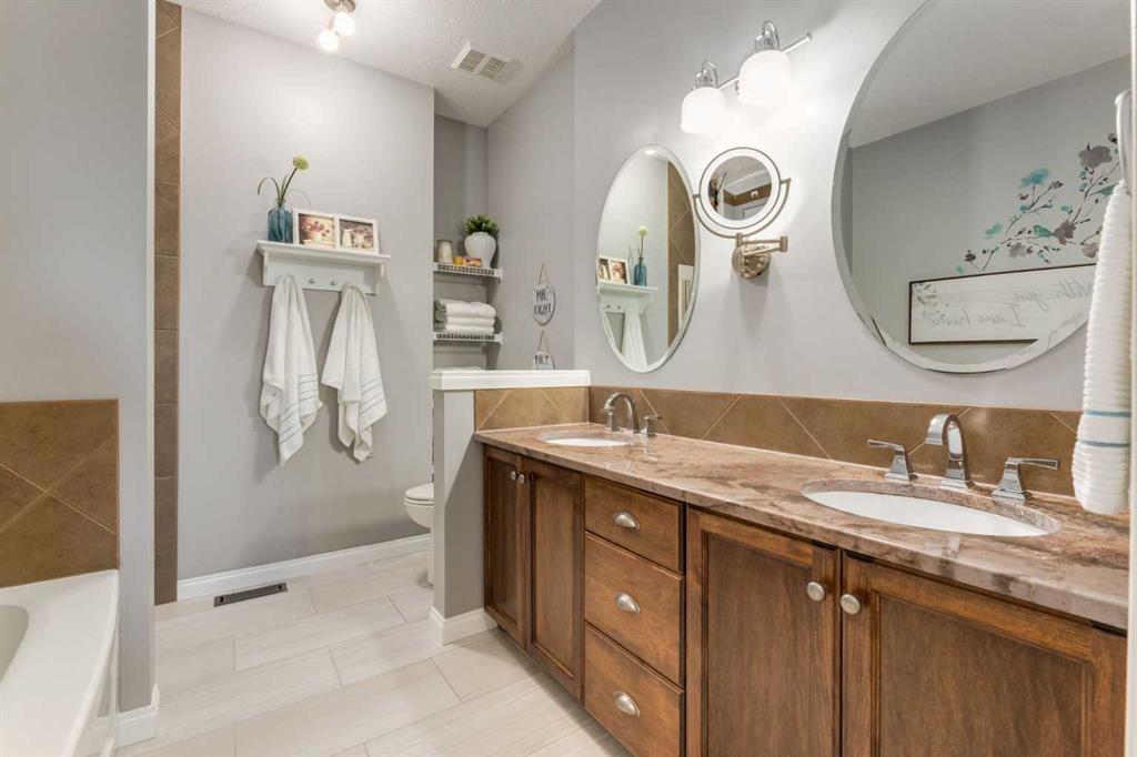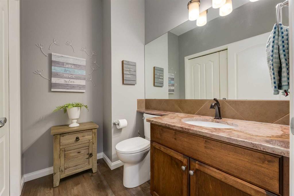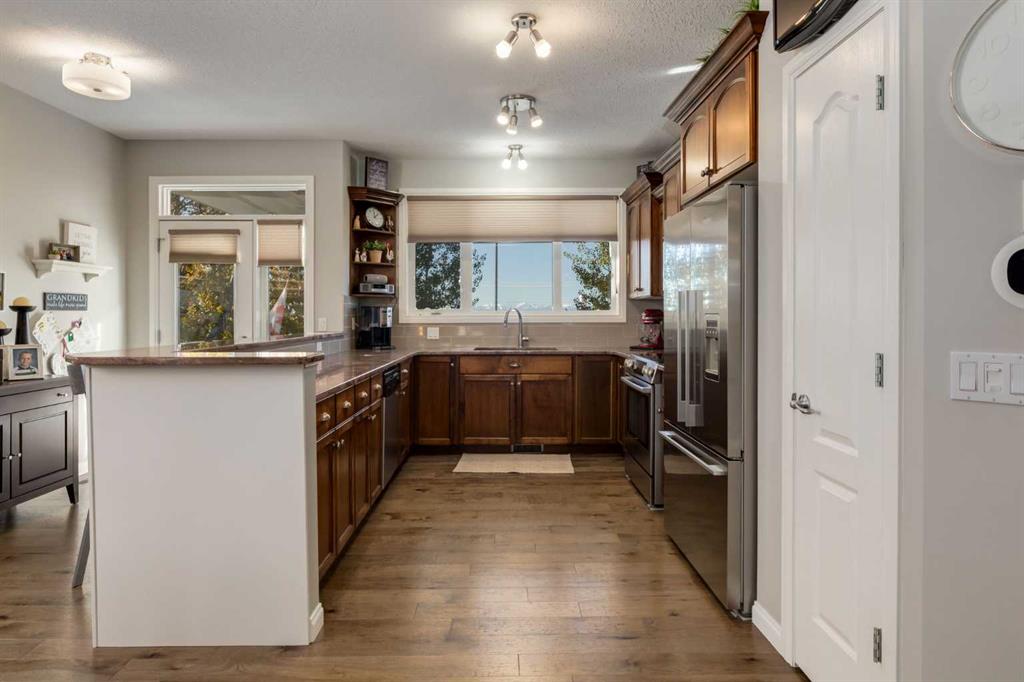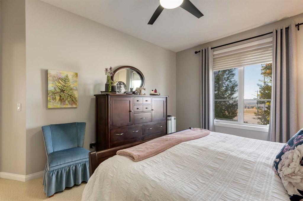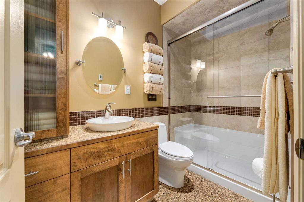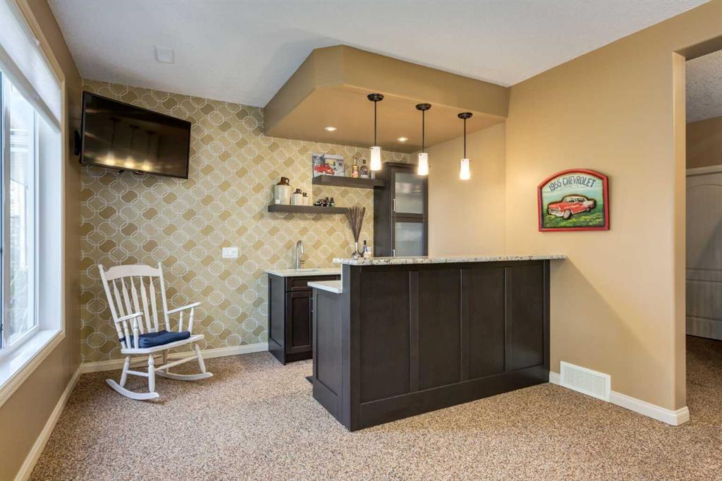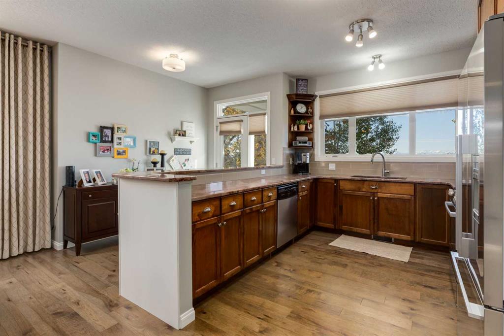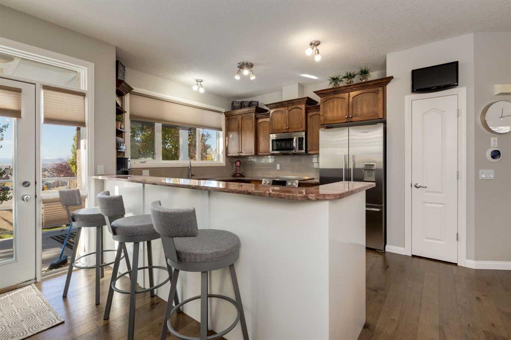 Welcome to this immaculately maintained bungalow offering over 2,200 sq. ft. of beautifully finished living space. Perfectly situated in an exclusive, quiet complex with just 14 bungalow style villas, this home provides a rare combination of privacy, elegance, and breathtaking natural surroundings. From the moment you step inside, you’ll be impressed by the rich hardwood flooring, soaring ceilings, custom Hunter Douglas blinds and abundant natural light that define the main living area. The kitchen features, beautiful dark cabinetry, granite countertops, a convenient eat up bar, pantry and stainless steel appliances, seamlessly flowing onto a sunny southwest facing deck with a charming pergola; perfect for enjoying your morning coffee or an evening glass of wine while surrounded by nature. The inviting living room centres around a stunning gas fireplace with beautiful masonry, creating a warm and welcoming atmosphere. The primary suite offers a private retreat with a luxurious 5 piece ensuite, including a double vanity, soaker tub, separate shower, and a spacious walk through closet. A discreetly located 2 piece powder room and laundry area add thoughtful functionality to the main level. Descend down the elegant curved staircase to the fully finished walk out lower level, where a spacious recreational area with a pool table offers the perfect setting for entertaining or relaxing. This level also features a generous second bedroom, a beautifully appointed 3 piece bathroom with heated flooring and an impressive wet bar complete with quartz countertops and exquisite built in cabinetry. Ample storage space and a covered patio create the ideal blend of functionality and outdoor enjoyment. Additional highlights include an insulated double attached garage, private driveway and visitor parking. The complex is beautifully maintained, with meticulous care evident throughout the grounds and common areas. Located just a short stroll from the LRT station, commuting is effortless. You’ll also enjoy easy access to exceptional amenities, including one of the city’s newest YMCA facilities, shopping, dining and recreational options. For those who love the outdoors, a quick drive west puts you on the road to Banff National Park in just over an hour. This is a rare opportunity to own a premium villa in one of the city’s most desirable locations; a perfect blend of comfort, elegance and convenience. Book your private showing today!