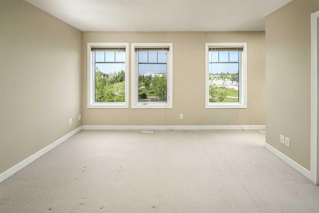 Open House 1:00-4:00pm Saturday Oct 18th. Location, Location, Location! This is undoubtedly one of the best locations in the entire complex—backing onto a beautifully treed courtyard with a BBQ pit and gazebo and front facing a huge green space with scenic mountain views. Step into this stunning 4-level split townhouse and experience an open-concept design that offers an abundance of natural light and a bright, airy ambiance. Imported hardwood floors flow throughout the main living areas, enhancing the sophisticated feel of the home. The living room features soaring 12-ft ceilings, a cozy gas fireplace, and French doors that lead to your private, fenced East-facing yard—perfect for morning coffee or relaxing in the sun. Adjacent to the kitchen, the spacious dining area opens to a West-facing balcony with a stylish pergola and gas BBQ hookup, ideal for evening entertaining. The kitchen is equipped with stainless steel appliances, a built-in wall oven, and a sleek countertop stove—a dream for any home chef. Upstairs, you’ll find two generously sized primary bedrooms, each with its own walk-in closet and private ensuite, offering comfort and privacy for all. Additional highlights include Single attached garage, insulated and finished. Heated main floor entrance. Ample storage in the partially finished basement. Recent upgrades: new refrigerator, microwave hood fan, and light fixtures (2025). This is a well-run complex, ideally situated within walking distance of both Royal Oak School (K-3) and William D. Pratt School(4-9), Renert School (K–12)Tied for first place: Rundle College and Webber Academy in Calgary ,with Royal Oak Plaza ( Walmart, London Drugs , Sobeys, A-Mart, Shoppers Drug Mart) playgrounds, and transit just steps away. You’re also minutes from Shane Homes YMCA and will soon enjoy the brand-new Rocky Ridge Athletic Park, opening Fall 2026. With easy access to Stoney and Crowchild Trail, this location makes commuting a breeze—whether you’re heading downtown or west to the mountains. This is a fantastic opportunity to own in one of NW Calgary’s most desirable communities.