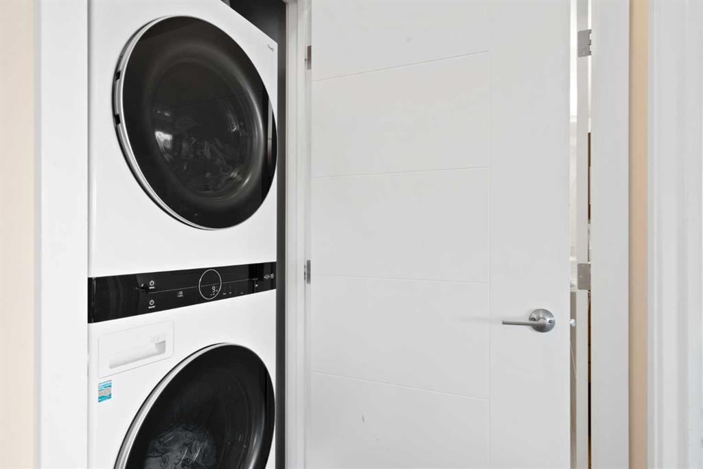 As you enter, you’re welcomed by a foyer that opens into the modern kitchen, featuring a centre island and stylish two-toned cabinets that keep the space feeling light and homey. The kitchen flows seamlessly into the living room, making it ideal for both entertaining and everyday living. The primary bedroom is complete with a walk-through closet and a private ensuite bathroom, while the second bedroom is generously sized with plenty of natural light. In-suite laundry ensures everything you need is right at home.