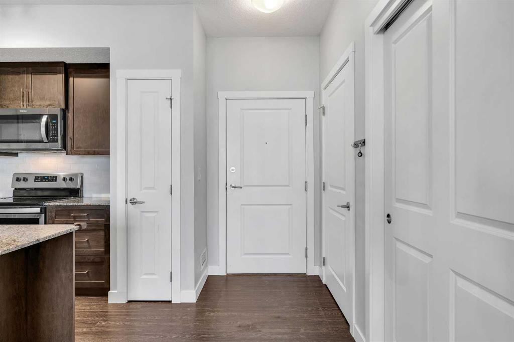 Welcome to unparalleled MODERN LIVING nestled in the new community of Sage Hill, a great community gracing Calgary’s sought-after NW quadrant. Here, in the midst of urban sophistication, stands a SPACIOUS 815 sq ft TOP-FLOOR condo in the Mark 101 complex, a beacon of refined living and contemporary ELEGANCE. Offering 2 BEDS + 2 BATHS + 1 TITLED UNDERGROUND PARKING STALL + 1 STORAGE UNIT, this residence offers the EPITOME of modern comfort and style. The open floor plan beckons, effortlessly blending the kitchen, dining, and living areas into a HARMONIOUS sanctuary for everyday living and gracious entertaining. One of the crowning jewels of this condominium is its large balcony, a serene OASIS offering VIEWS of the beautiful Northwest landscape. Step inside, and be greeted by a symphony of LUXURIOUS touches and refined finishes. Dark wood color laminate flooring stretches across the expanse, a timeless foundation upon which the rest of the space unfolds. The walls, adorned in a palette of understated elegance, serve as a backdrop for the unfolding drama of daily life. The kitchen, a CULINARY HAVEN fit for the most discerning chef, beckons with its sleek lines and modern amenities. High quality stainless steel appliances and PREMIUM granite countertops stand as testaments to both form and function, while PRISTINE modern cabinetry offers ample storage space for every culinary need. A stunning backsplash, intricately designed and artfully executed, serves as a focal point, infusing the space with a sense of CHARACTER & CHARM. Next to the dining area lies the entrance to the second bedroom, a versatile space offering endless possibilities. Whether utilized as a home office/gym or transformed into a welcoming guest retreat for visiting loved ones, this room embodies the essence of modern flexibility and convenience. A conveniently located 4-piece main bath stands ready to accommodate. Beside the main entrance, a doorway grants access to the in-suite laundry room, seamlessly blending utility with elegance. Next to the main living area is the luxurious PRIMARY RETREAT that offers a private escape from the cares of the world, a haven of comfort and tranquility. The primary ensuite offers a luxurious escape from the rigors of daily life. A modern vanity with granite countertops and spacious modern glass shower are meticulously crafted and elegantly appointed. With access to the LARGE BALCONY from the main living area, residents are invited to bask in the splendor of outdoor living. Discover the charm & excitement of Sage Hill, one of Calgary’s most sought-after new communities, designed with modern living and lifestyle in mind. Located in the heart of Calgary’s thriving North-West, Sage Hill offers a seamless blend of urban conveniences, ample amenities, scenic landscapes, and a strong sense of community. CALL TODAY to book your PRIVATE TOUR!!