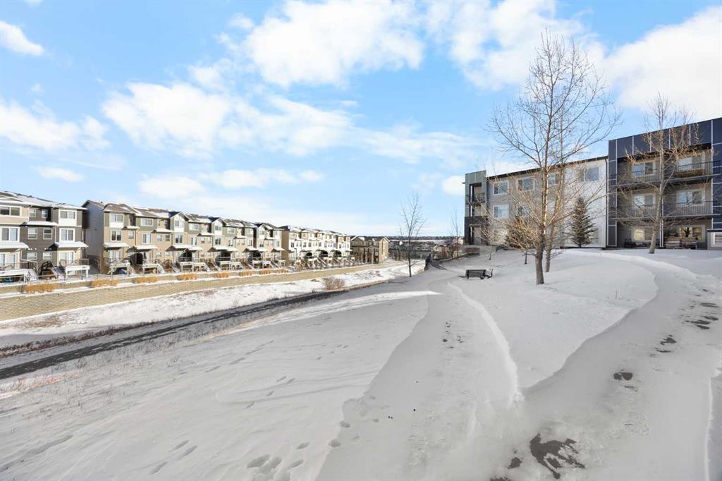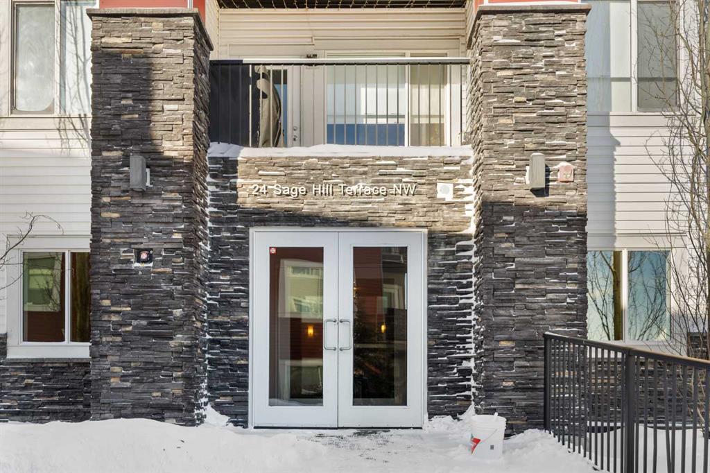 Welcome to this well-appointed apartment in the desirable community of Sage Hill, offering 1 Bedroom + Den, 1 Bath, and 573 sq ft of comfortable living space with the added luxury of in-floor heating throughout. Step inside and be greeted by impressive 9-foot ceilings and beautiful vinyl plank flooring. The open-concept floorplan features a bright North-East facing Living Room that flows seamlessly into the Kitchen. The well-appointed Kitchen boasts granite countertops and stainless steel appliances, including a brand new fridge purchased in 2025. The Primary Bedroom provides a peaceful retreat with a walk-in closet and a 4pc Bath featuring granite countertops, while the good-sized Den with extra storage makes an ideal Home Office or flex space. In-suite stacked Washer and Dryer add everyday convenience. Step outside to your private walk-out Patio, perfect for enjoying morning coffee or relaxing in the fresh air — with direct access to the scenic walking path for morning strolls or evening walks. This unit also includes underground heated titled parking and visitor parking at the front of the building. Located in Sage Hill, just steps to walking paths beside the pond and close to Walmart, T&T Supermarket, shopping centres, and restaurants, with easy access to Stoney Trail for quick commutes across the city. Move right in and enjoy comfortable living in Sage Hill!