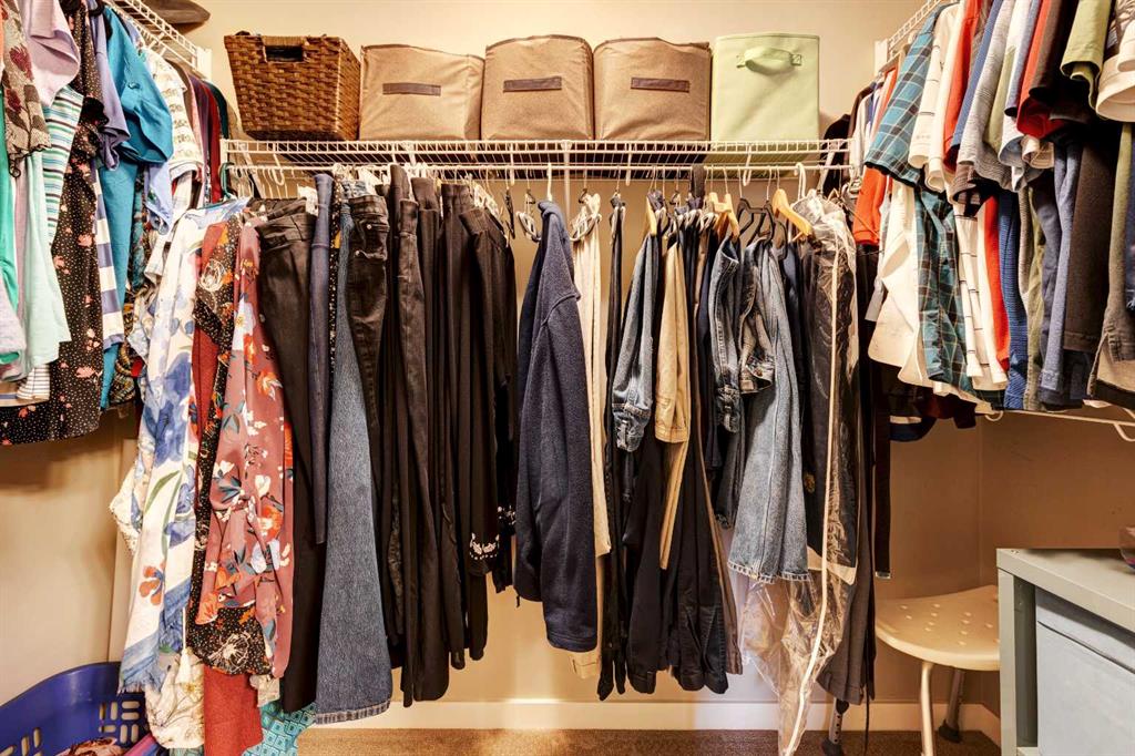 existing window coverings, wardrobe in basement bedroom, garage racks and shelves, shed (as is), pergola on deck |