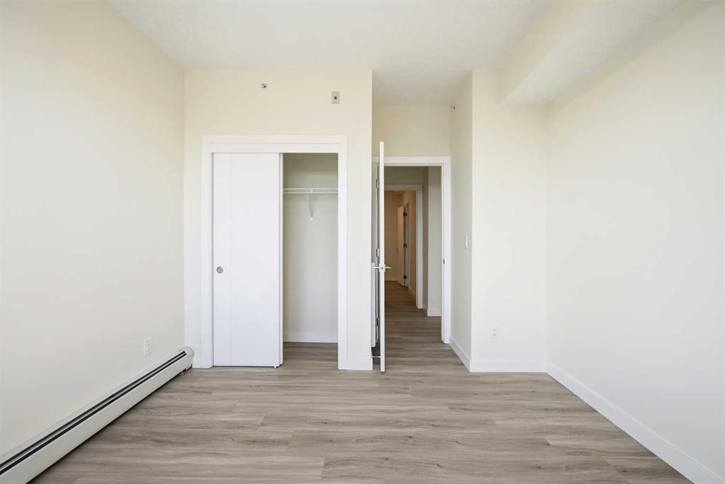 TOP FLOOR/CORNER UNIT/ BEAUTIFUL VIEWS FROM UNIT/2 BEDROOM/1 BATH/BALCONY. Discover modern living in this brand-new, never-occupied 2-bedroom, 1-bathroom condominium in the highly desirable community of Skyview Ranch NE Calgary Offering 656 of living space (Included Balcony) & immediate possession, this beautifully finished unit combines style, functionality, and convenience in one exceptional package. Key location features- WALKING DISTANCE TO SCHOOL, SHOPPING, PARK & more. Step inside to find a bright and airy open layout enhanced by 9-foot ceilings and oversized windows that allow natural light to pour in. The contemporary design is highlighted by wide-plank luxury vinyl flooring and elegant quartz surfaces throughout, creating a clean and upscale aesthetic. The kitchen is thoughtfully upgraded with stainless steel appliances, quartz countertops, soft-close cabinets, a generous PANTRY, and a convenient BREAKFAST ISLAND perfect for dining, meal prep, or casual entertaining. The kitchen flows effortlessly into the dining and living areas, providing a comfortable and welcoming space for both daily living and hosting guests. Two well-sized bedrooms offer flexibility for a home office, guest room, or roommate setup. The stylish 4-piece bathroom features modern finishes and quartz counters for a polished look. Additional features include in-suite laundry and upgraded window coverings for added comfort and privacy. Enjoy outdoor relaxation on the spacious private balcony complete with a gas line for BBQs—ideal for summer evenings. This unit also includes TITLED UNDERGROUND PARKING, a titled storage locker, and secure bike storage for added convenience. Located in a newly built complex, this property offers low-maintenance living close to shopping, schools, transit, major roadways including Stoney Trail, and Calgary International AIRPORT. Perfect for first-time buyers, young professionals, downsizers, or investors looking for a turnkey opportunity in a growing neighborhood. Move in right away or choose a flexible possession timeline to suit your needs. An excellent opportunity to own in one of Calgary’s most dynamic communities. Call your favorite realtor to book showings.