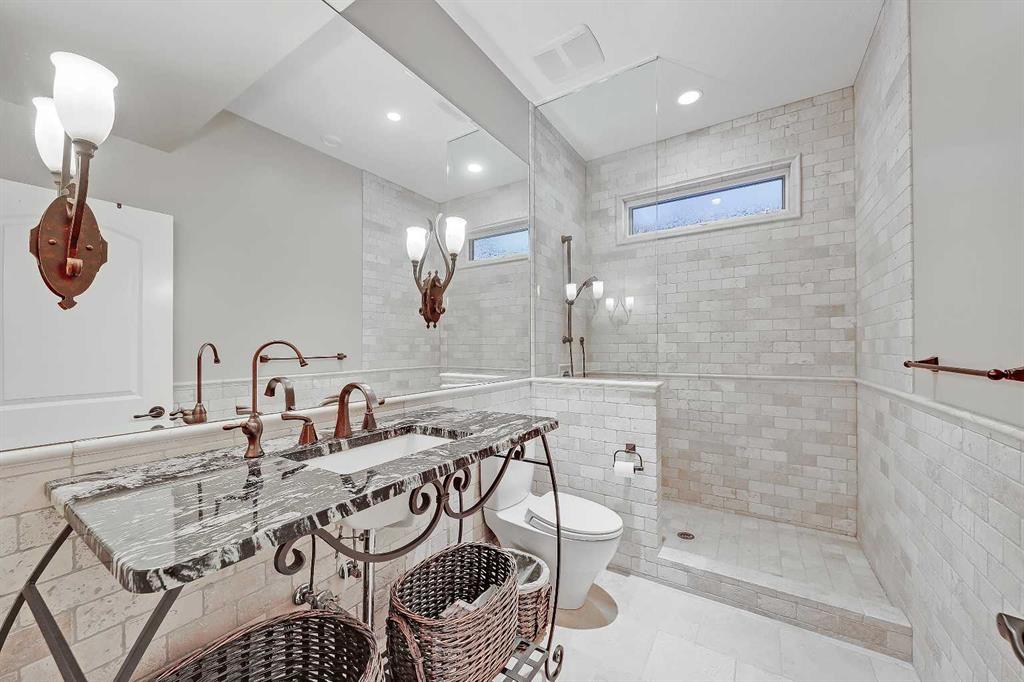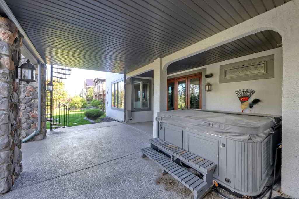 Wake up to sweeping mountain views from this timeless luxury home in prestigious Springbank Hill. Offering nearly 6,200 sq ft of refined living space across all levels, this residence blends classic design with modern comfort on a beautifully landscaped 0.30-acre lot surrounded by mature trees and lush greenery. The grand foyer sets the tone with an 18’ barrel-vault ceiling and Carrara marble floors, leading to a formal dining space with coffered ceilings and a custom stained-glass feature, and an elegant living room anchored by a 2-way fireplace and soaring barrel vault ceilings. West-facing windows frame mountain and community vistas, while French doors extend the living space outdoors to a massive private deck—perfect for evening relaxation or quiet entertaining that is virtually invisible to both neighbours. A gourmet kitchen anchors the home with custom hardwood cabinetry, dual islands, and premium appliances from Wolf, Sub-Zero, and Miele. The thoughtful layout also features a bright and airy breakfast nook and a walk-in pantry. Just off the kitchen is the full laundry room and mudroom that connects to the oversized triple garage. It features epoxy floors, a dog wash, and direct basement access, as well as additional side and front door access. The private main floor primary suite offers a serene retreat with a corner fireplace, private deck access, and a spa-inspired 5-piece ensuite featuring a steam shower, soaker tub, and dual vanities. Plus, a fully equipped walk-in closet features floor-to-ceiling storage for endless organization. Upstairs, a versatile loft with vaulted ceilings, skylights, and a fireplace offers an ideal office, library, or additional bedroom option, complete with its own 2-piece bathroom. The fully developed walkout basement is designed for both leisure and entertaining, featuring a large rec room with custom cabinetry and a wet bar, a dedicated home theatre and with some imagination, could be converted into a full-scale golf simulator! The basement also has two oversized bedrooms with private ensuites and walk-in closets. The basement also features a Tuscan-inspired full bath, perfect for showering off from the included hot tub. Outside, mature landscaping creates a private, forest-like setting, putting green, featuring a west-facing upper deck, a walkout lower patio with a hot tub, and a full-size putting green—all surrounded by stone accents and ambient lighting. Additional highlights include four fireplaces, in-floor heating, a Kinetico Water System throughout, dual central A/C, dual water tanks, high-efficiency systems, integrated home automation and security, and a durable clay tile roof. Every element reflects exceptional craftsmanship and enduring quality. Located moments from Aspen Landing, top-rated schools, and major routes, this home combines elegance, comfort, and convenience. Rarely does a residence with such commanding views and thoughtful design become available—experience the best of Springbank Hill living today.