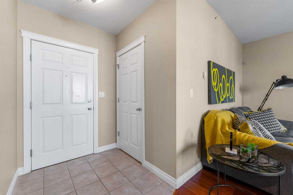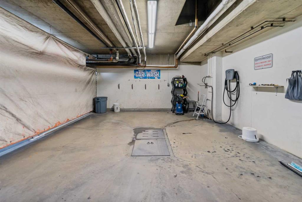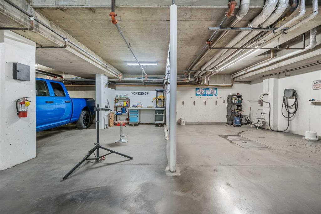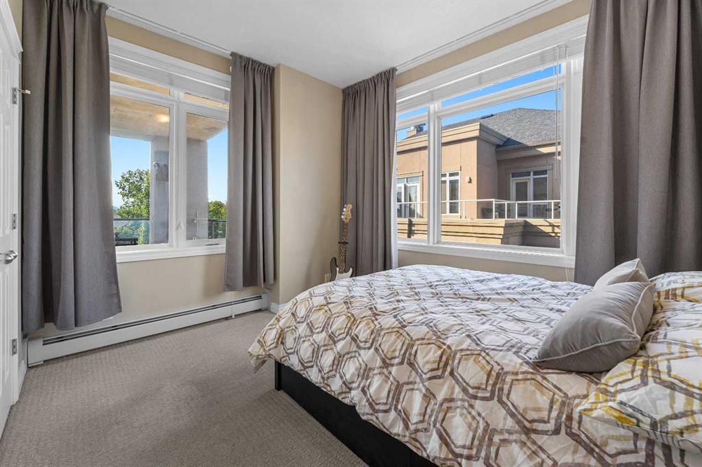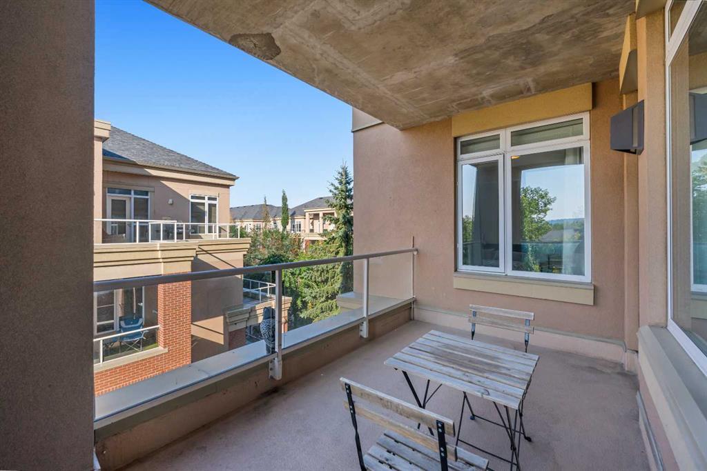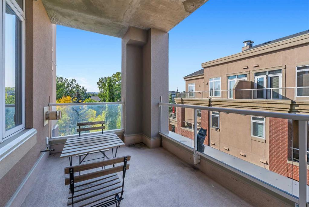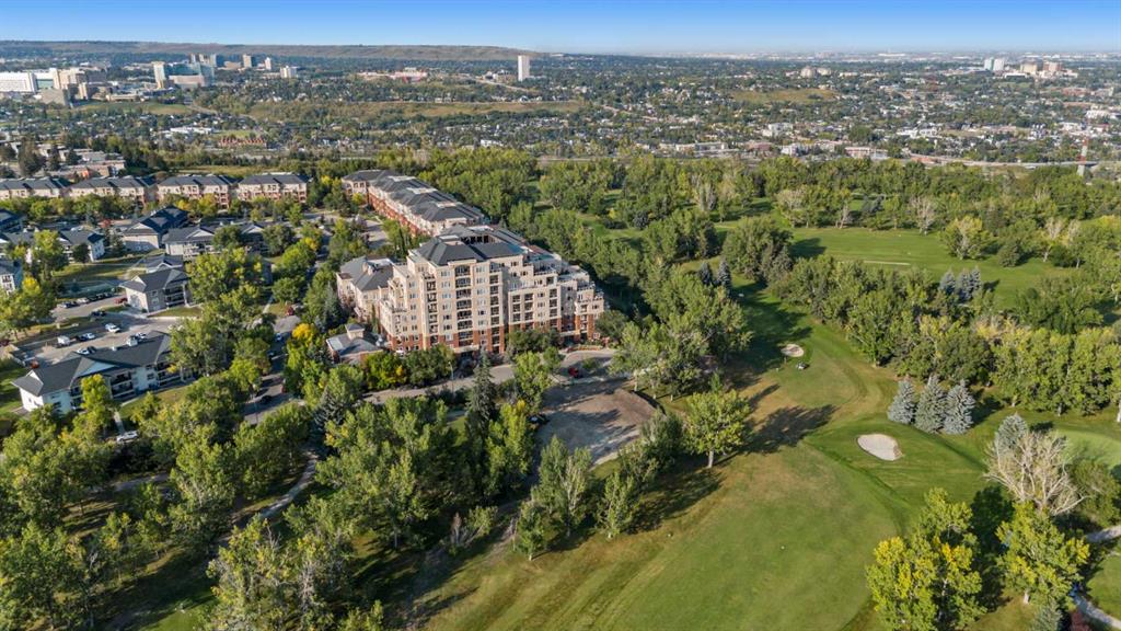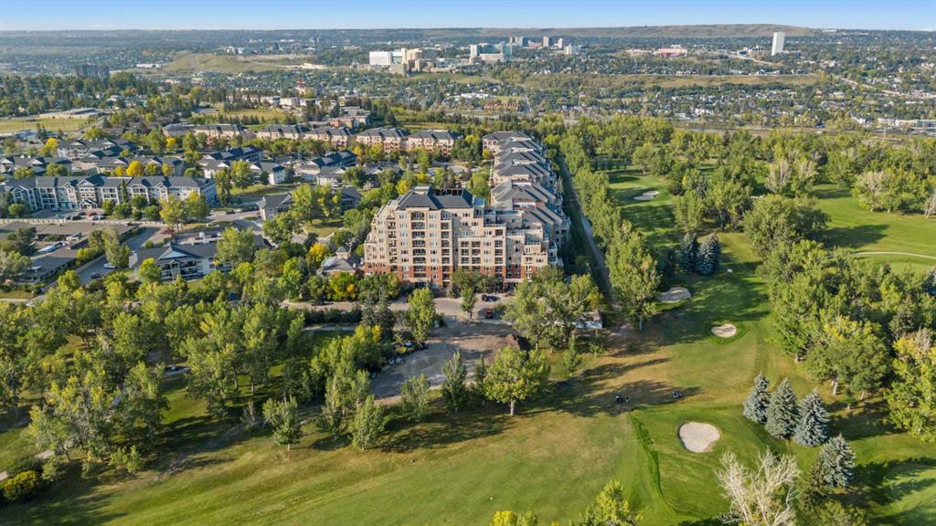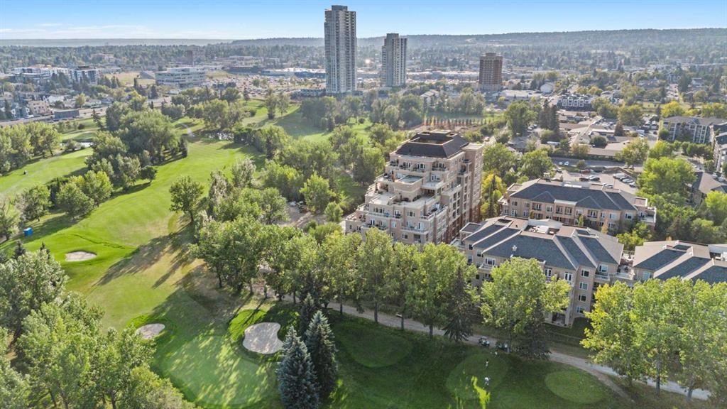 Welcome to this bright and spacious condo just steps from Shaganappi Golf Course and minutes to downtown, shopping, and all amenities. As you enter your home the open-concept living area features 9 ft ceilings, hardwood flooring and a cozy gas fireplace creating an airy and inviting space ideal for enjoying an evening of relaxation. With patio doors leading to a large covered balcony with a BBQ gas hookup, this is a great space for entertaining and enjoying the many warm summer nights Calgary has to offer. As you make your way into the modern kitchen it is complete with stainless steel appliances, quartz countertops and an island with a breakfast bar. This is a fantastic kitchen for whipping up delicious home cooked meals and trying your latest recipes when entertaining friends and family. The large primary bedroom offers large windows bringing in natural light as well as a suite which boasts a large walk-in closet and spa-like ensuite with a soaker tub and separate shower. This is your own personal oasis, a luscious space for you to recharge after a long day of work or adventure. The second bedroom is equally generous in size with large windows as well making it a perfect space for guests and hobbies. This condo also features in-suite laundry, a titled parking stall and a storage locker all designed to aid in your carefree lifestyle. With outstanding building amenities including the Copper Club party room, large fitness facility, car wash bay and bicycle storage and workshop, this home is the perfect place for you to set down roots and enjoy all life has to offer.