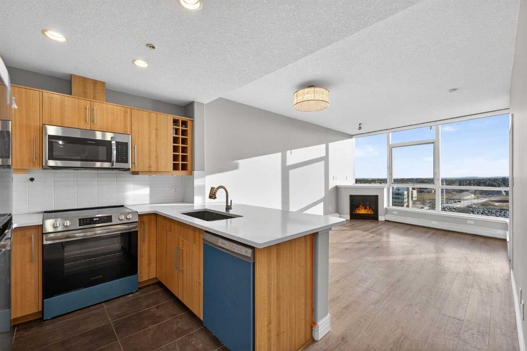 Welcome to this beautifully updated and meticulously maintained 2-bedroom, 2-bathroom condo featuring breathtaking southwest exposure and unobstructed mountain views from both the living room and primary bedroom. Flooded with natural light, this home offers the perfect blend of comfort, style, and convenience in one of Calgary’s most connected west-side locations. The home has been tastefully upgraded with brand-new quartz countertops in both the kitchen and bathrooms, new modern faucets, and brand-new stainless steel appliances, giving the space a fresh, contemporary feel and true move-in-ready appeal. The bright and spacious open-concept layout is perfect for both everyday living and entertaining, while large windows frame spectacular views and stunning sunsets. Strategically located just 10 minutes from downtown, this unbeatable location offers direct access to bike paths leading to the Bow River and city core. Westbrook Mall, Walmart, shops, cafés, restaurants, and the Westbrook LRT station are literally steps from your door, making commuting and daily errands effortless. Shaganappi Golf Course is right next door for outdoor enthusiasts. Residents enjoy resort-style amenities including a fitness centre, indoor swimming pool, hot tub, and bookable conference rooms. The unit also includes a titled heated underground parking stall and an assigned storage locker for added convenience. Perfect for professionals, down-sizers, or investors, this is a rare opportunity to own a bright, upgraded, view-oriented home in an unbeatable location.