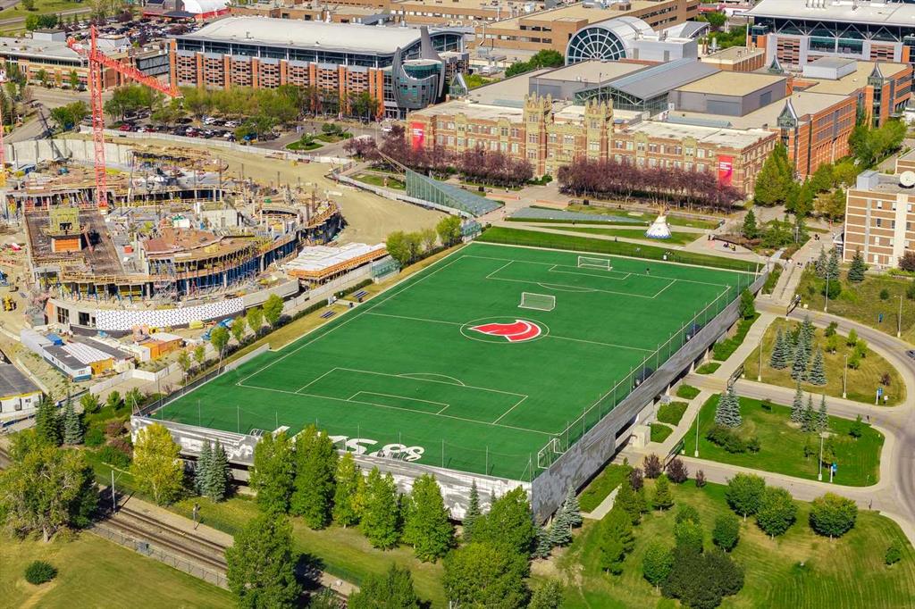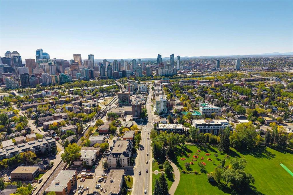Discover this thoughtfully designed 1-bedroom + den unit in one of Calgary’s most sought-after inner-city communities. Perfectly positioned at the back of the building for peace and privacy, yet just steps away from Kensington’s vibrant shops, cafes, and restaurants, this home strikes the perfect balance of energy and tranquility. Step inside to find a bright, spacious layout with radiant in-floor heating (no carpet!) and an inviting open concept floor plan, ideal for entertaining. The kitchen is a standout, offering granite countertops, ample storage, a large island with eating bar, and stainless steel appliances. A cozy gas fireplace warms the living room, which opens onto a balcony perfect for morning coffee, container gardening, and even catching a glimpse of Princes Island fireworks on special occasions. The primary bedroom includes a walk-through closet leading to a 4-piece ensuite. The versatile den works perfectly as a home office or guest space. Additional features include newer A/C, in-suite laundry, titled underground parking, a storage locker, and pet-friendly bylaws, a rare find. The location is unbeatable: Riley Park is just across the street, the C-Train, grocery store, bank, and local shops are all within a 5-minute walk, and downtown is only 10–15 minutes on foot or a quick bike ride away via the dedicated bike lane right outside your door. Whether you’re a first-time buyer, investor, or downsizer, this home offers an incredible opportunity to live in one of Calgary’s most walkable, vibrant, and green neighbourhoods