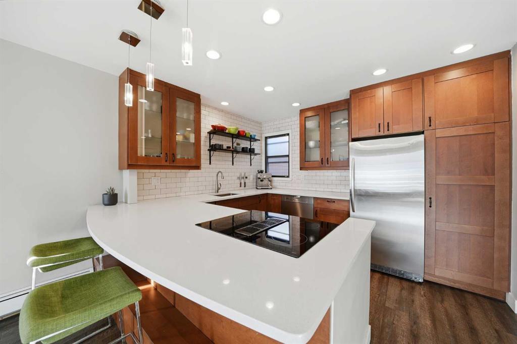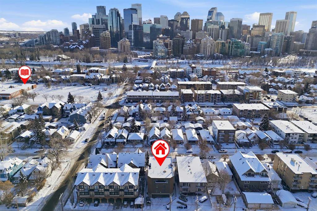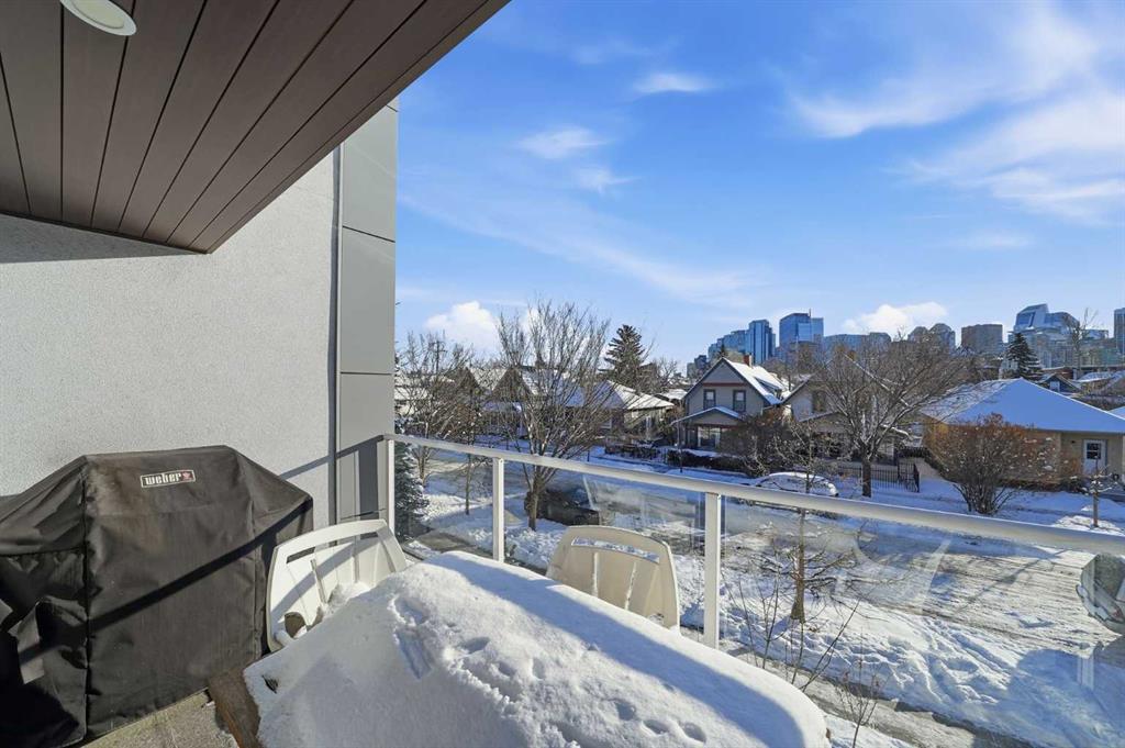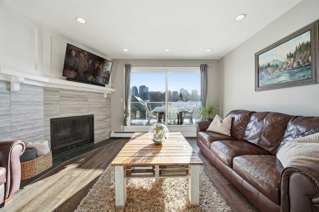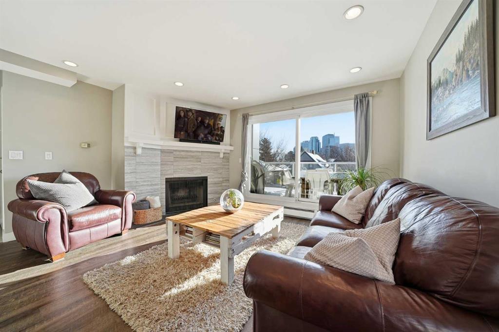 Unique opportunity in the heart of Sunnyside, just steps to the LRT, Safeway, the shops and restaurants of Kensington, Bow River pathways, and a quick walk into Downtown! This rare three-bedroom condo offers the perfect blend of inner-city convenience and comfortable living, all in a beautifully renovated, move-in-ready package. Flooded with natural light, the unit features a newly updated south-facing balcony where you can soak up the sun while enjoying spectacular downtown skyline views: the ideal spot for your morning coffee or evening unwind. Inside, the inviting living room is anchored by a real wood-burning fireplace with gas log lighter, creating a warm and cozy atmosphere that’s hard to find in condo living. The modern kitchen overlooks the spacious dining and living areas, making it perfect for entertaining or everyday living. Thoughtfully designed, the private rear wing of the unit offers three generous bedrooms, including a primary retreat complete with a convenient two-piece ensuite. Additional highlights include in-suite laundry, dedicated in-suite storage, and an exceptional layout that maximizes both function and flow. Whether you're walking to work, biking along the river, or enjoying everything Kensington has to offer, this is truly inner-city living at its best. Nothing to do but move in and enjoy; don’t miss this rare opportunity!