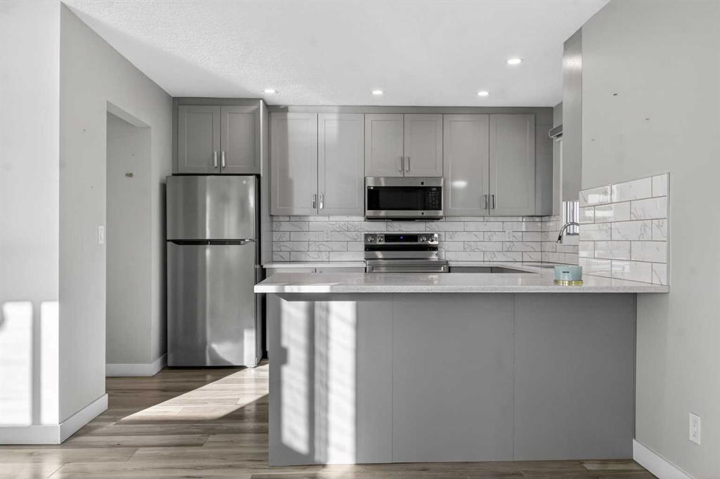 CORNER LOT! One of the largest half-duplex lots in the area (approximately 4,500 sq ft) with back lane access! Fully renovated and thoughtfully designed, this home features an illegal basement suite with a separate entrance, offering excellent mortgage-helper potential and two fully livable suites. This freshly updated property provides over 1,800 sq ft of quality living space, featuring 5 bedrooms and 3 bathrooms with a simple, functional open-concept layout throughout. The main floor showcases a spacious family room with a cozy fireplace, an updated kitchen with modern appliances, a dining area with direct access to the deck, and a convenient half bath. The upper level includes three bedrooms and a full bathroom, with the primary bedroom offering direct access to the bath. The basement illegal suite is complete with its own kitchen, family room, two bedrooms, and a full bathroom. Separate laundry setups for both suites add extra convenience. Located in the community of Temple, this home offers easy access to schools, shopping, and essential amenities, with quick connections to 32 Avenue NE. Exceptional value in a prime location!