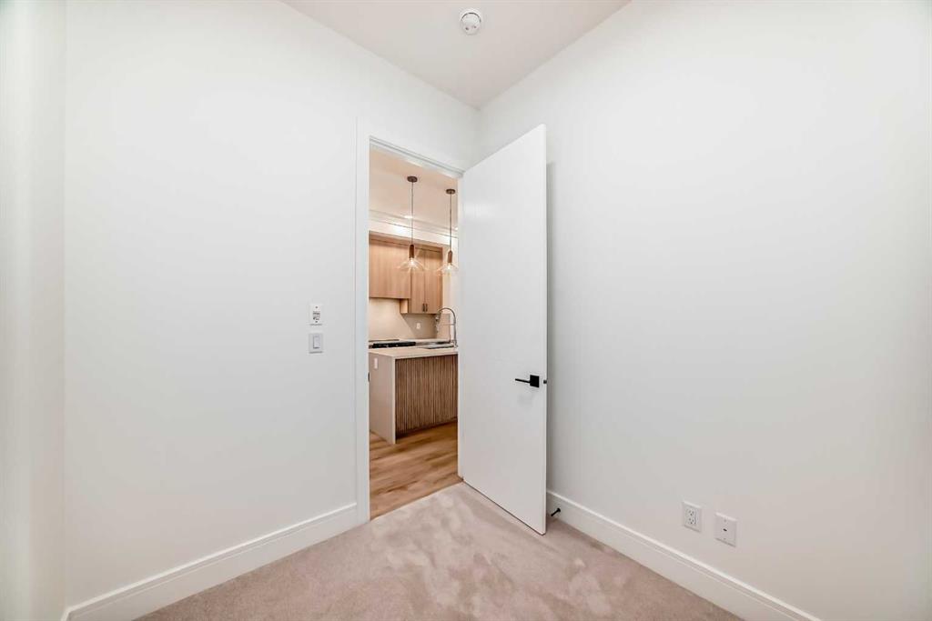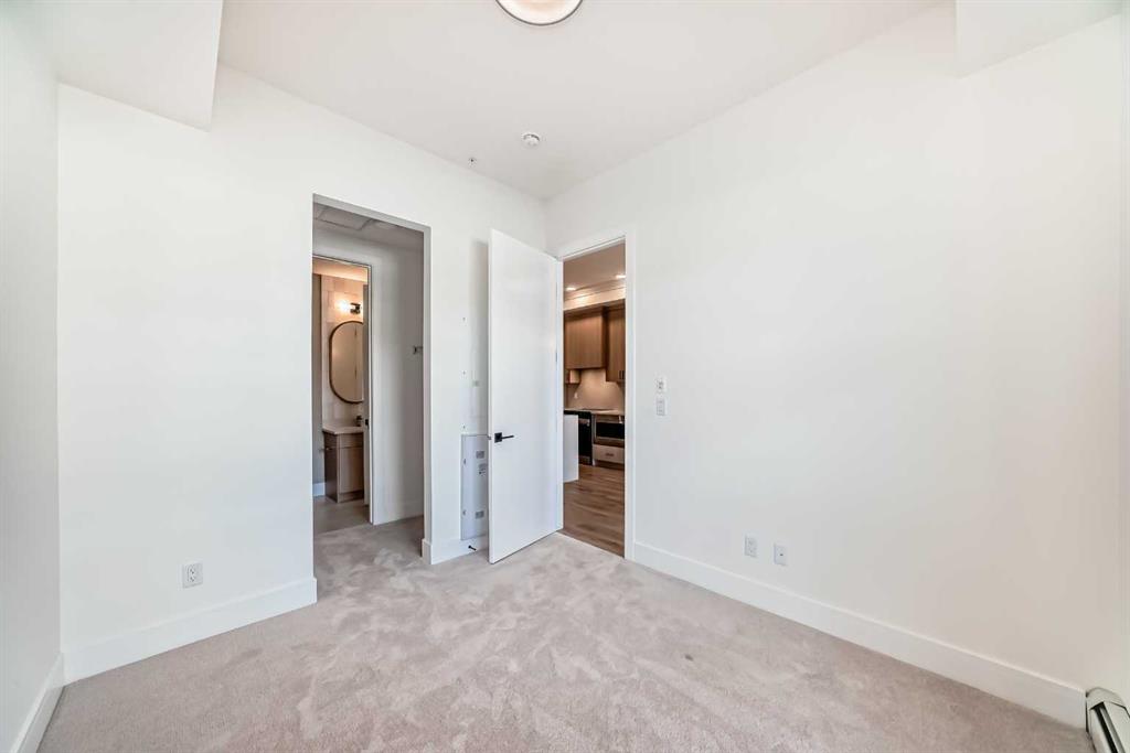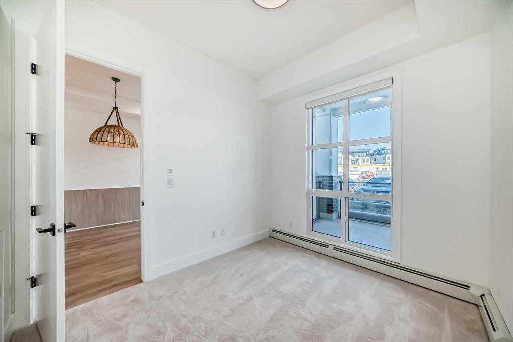 Step into modern luxury with this brand-new 1 bedroom + den 603 square feet home located on the ground floor of the award-winning University District. From the moment you walk in, you’ll notice the attention to detail—sleek quartz countertops, panel-ready appliances, soft-close cabinetry, and designer finishes that make every space feel elevated. The thoughtful floor plan includes a bright entrance, a contemporary kitchen with dining area, a spacious living room with oversized windows, and direct access to your private patio—perfect for morning coffee or winding down in the evening. The primary bedroom features a walk-in closet and a 4-piece bath completes the floor plan of this new and never-occupied home. A versatile den offers endless possibilities, whether as a home office, study space, or guest room. Added conveniences include in-suite laundry, underground parking, and a dedicated storage unit. Outside your door, you’ll enjoy a vibrant, walkable community with boutique shops, cafés, restaurants, parks, and green spaces. The building itself offers exclusive brand-new amenities designed to complement your lifestyle. With quick access to the University of Calgary, Market Mall, Foothills Medical Centre, and endless conveniences, this home offers the perfect blend of luxury and location. This is more than a home—it’s your gateway to elevated living in one of Calgary’s most sought-after communities.