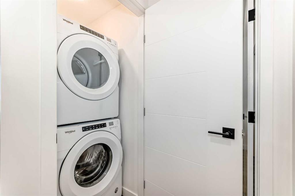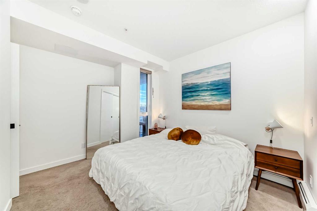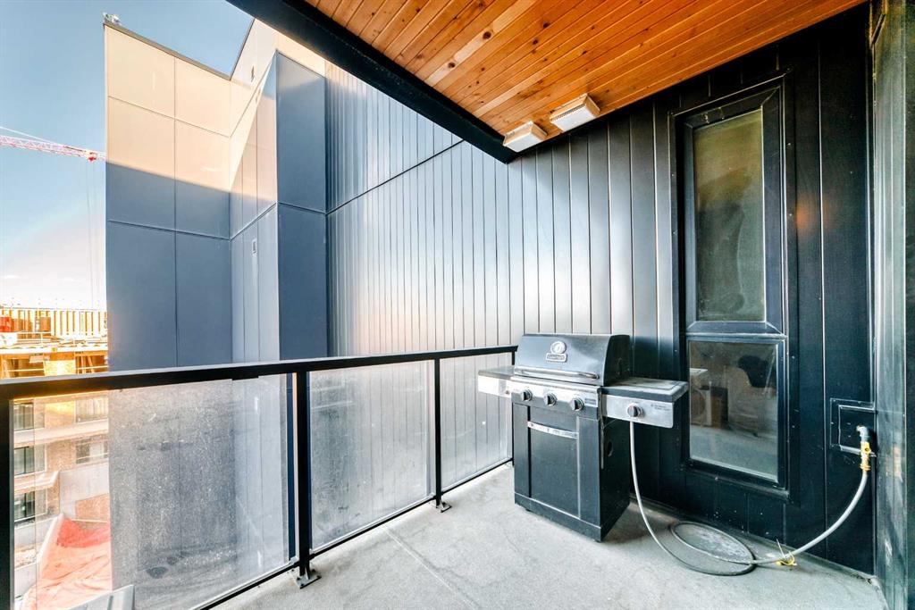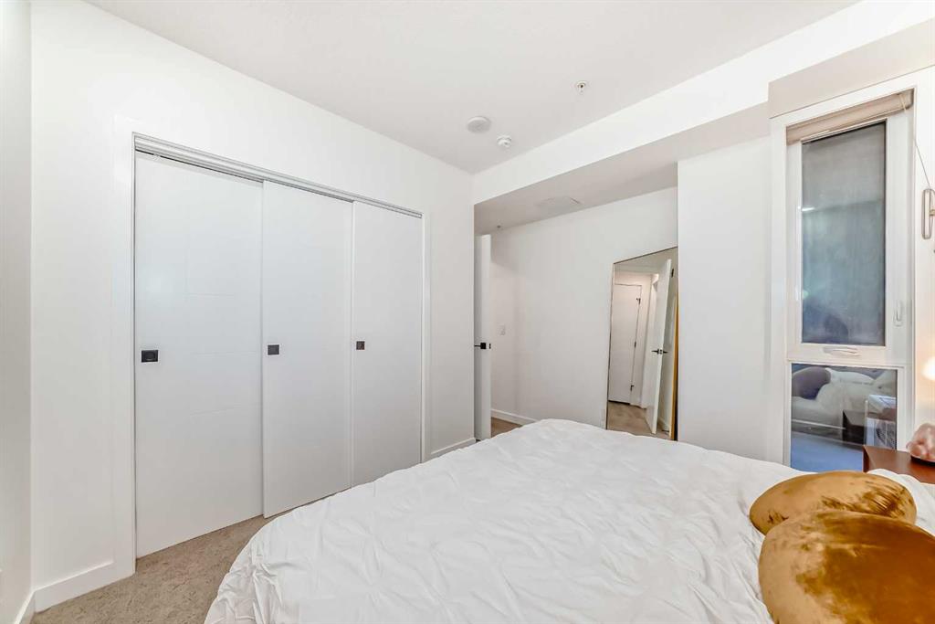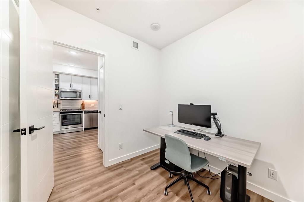Welcome to this gorgeous 1 bed/1 bath + den unit in the heart of the University District! The unit features an open concept living space w/9' ceilings, luxury vinyl plank throughout the living space and loads of light through the large windows. The kitchen/dining features gorgeous white cabinetry, quartz counters, gas range, stainless appliances and enough space for a farm style table. The living area is great for entertaining, with mini split AC for the summer and walks out to a good sized balcony with extra storage & gas line for your BBQ., perfect for al fresco dinners The good sized primary bedroom has room for a king sized bed and amazing closet fitted with California Closet built ins. The den/office is great for those who work or study from home & also feature closet built ins. The bright 4 piece bath & in unit laundry complete the property. As well, there is one titled parking spot and an assigned storage unit, underground visitor parking, bike storage & car wash. The August in University District features a warm contemporary lobby and large common room w/kitchen, perfect for celebrating with family & friends. The building is ideally located next to the Alt Hotel by Le Germaine & Charcut restaurant, one block from the Children's Hospital, just blocks from U of C, and a quick walk to Save On, Cineplex cinemas, fitness centres, and many more restaurants & services. As well, it's close to the Bow River, Bowness Park, the Calgary Farmers Market and Winsport., and an easy jaunt out to the mountains. Book your showing today!