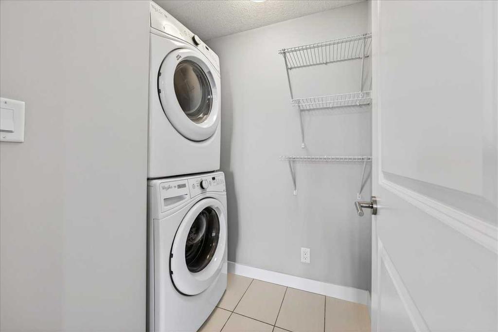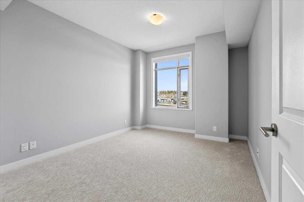 OPEN HOUSE Sat 31 Jan 11-2. Located in a newer concrete tower steps from all conveniences in the prestigious Groves of Varsity, this 5th floor 2 bedroom, 2 bathroom nearly 1,100 sq. ft. corner condo stands out. In perfect condition throughout, the open-concept living area opens to an upgraded kitchen on one side, and it also separates the spacious bedrooms (both with walk-in closets) for optimal privacy. The primary bedroom’s luxurious ensuite features TWO sinks in the quartz countertop over a cabinet with drawers, and a large glass-enclosed shower, plus a more private WC. The spacious kitchen features lots of full height maple-spice cabinets, stylish quartz countertops, a large island, and stainless appliances. Beyond the dining area in front of the kitchen, and beyond the living room is a bright and enclosed sunroom/flex area! The 9-ft high ceiling through-out allows the large windows (with professional window coverings) to pour light throughout; building has central air conditioning to keep you cool.The laundry machines sit in a cozy room. Freshly painted and NEW hardwood flooring amplifies the otherwise immaculate condition of the condo. The elevators are a short walk from your new home, and they lead to an array of services and amenities. Up on the rooftop is a large world-class fitness centre, with steam rooms, that opens to a terrace with panoramic views of the city and mountains. There is a meeting room on this floor as well. Underground is your heated, ample-sized titled parking space (#60), and assigned storage space. But, you don’t need to drive often because amenities like coffee shops, medical centre & pharmacy are right beside this grand complex. Additionally, the Silver Springs Golf Course is a block away, the Safeway grocery store & Dalhousie LRT station are two blocks away, and the large Market Mall is just a few more blocks away still. Further, the Bow River and University of Calgary are also close by, as are convenient thru fares to the Rocky Mountains and other places you want to go. FYI. There's an on-site property manager during business hours who is accessible to all residents, and an on-site BOMA-certified caretaker to ensure everything is running smoothly. They have installed EV charging stations in the underground parkade. Pets are welcome subject to board approval. Make your move to a place you will happily call home right away.