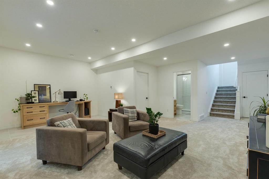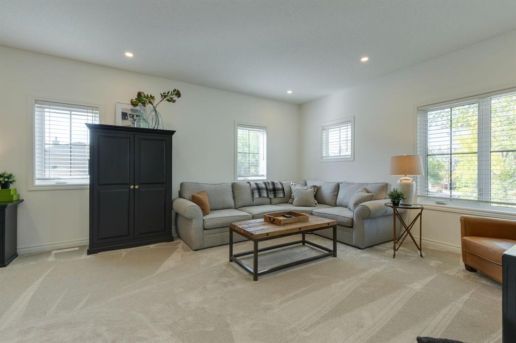 Experience timeless elegance in this custom-built family home, ideally located in the heart of West Hillhurst. Crafted with exceptional attention to detail and interiors designed by renowned Bay and Co., this residence blends high end finishes, thoughtful design, and a truly functional layout that feels as welcoming as it is refined. Step into a spacious, light filled foyer and immediately appreciate the quality craftsmanship. A custom glass walled home office sits just off the entry, both a striking design element and a practical workspace. A wide, arched hallway leads into the heart of the home, where sophistication and comfort effortlessly converge. A dreamy kitchen is the centrepiece anchored by an oversized island that invites gathering and connection. Outfitted with premium stainless steel appliances including a Wolf gas cooktop, extensive cabinetry, and sleek counters, it’s a space designed to inspire. An expansive butler’s pantry with built-in wall oven, microwave, and bar fridge offers ample storage and seamless access to the attached double garage (pre-wired for EV hookup); a rare and coveted inner city feature. The main living area features a cozy yet elegant living room with a gas fireplace flanked by custom built-ins, and a spacious dining area perfect for hosting. Sliding glass doors extend the living space outdoors to a covered patio, complete with an automatic privacy screen, creating a year-round outdoor retreat. Upstairs, the open riser staircase adorned with plush carpeting, leads to a large bonus room, laundry room with sink, 4pc bathroom, and three generous bedrooms. The primary is a true sanctuary, featuring a custom walk-in closet and an indulgent 6pc ensuite with in-floor heat, glass enclosed shower, and deep soaker tub for the ultimate relaxation experience. The fully developed lower level continues the theme of comfort and versatility with heated tiled floor workspace, a spacious rec room, games/exercise area, and a fourth bedroom ideal for guests or teens. Outside, enjoy a peaceful, fenced backyard with lush green space that's perfect for children and pets. Located steps from Helicopter Park, Karl Baker off-leash dog park, the Bow River Pathway, Foothills Hospital, and just minutes to Kensington and the downtown core, this exceptional property offers the ultimate in inner city living. A home where impeccable design meets everyday comfort, come experience the elevated lifestyle this gem has to offer.