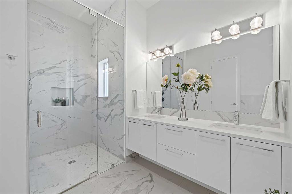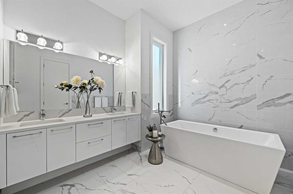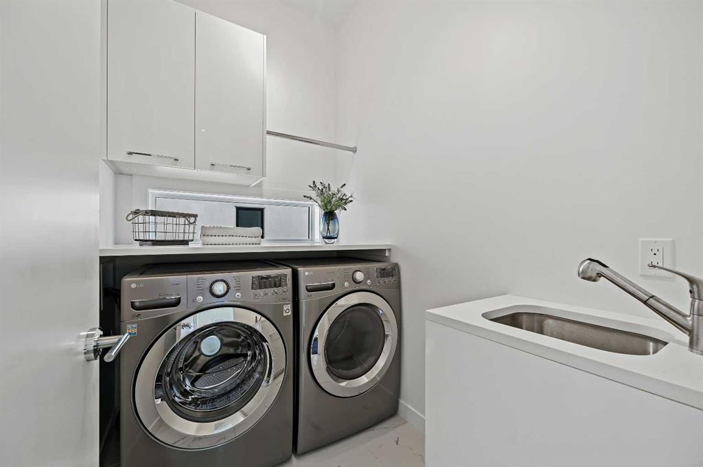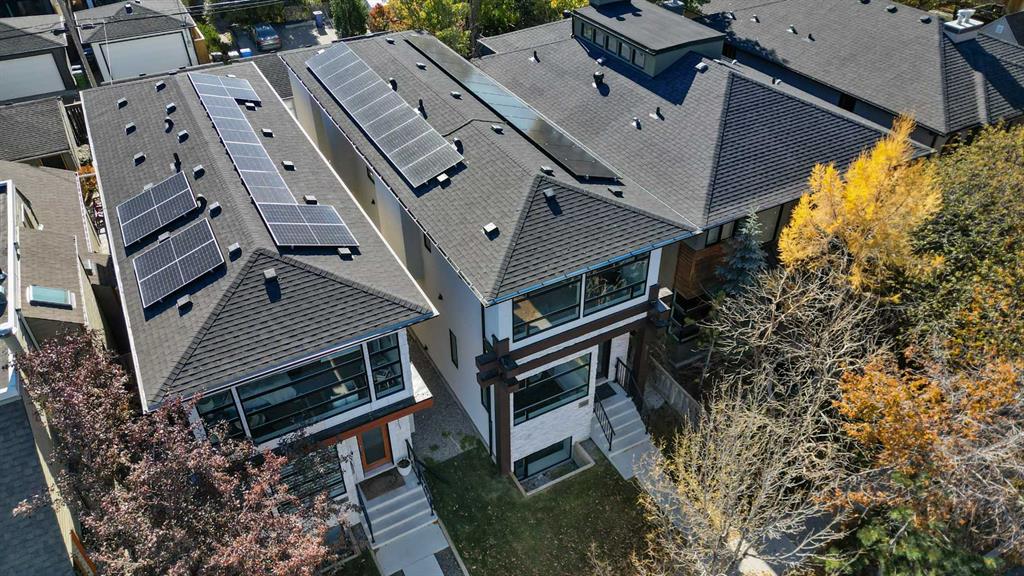 *** OPEN HOUSE SUNDAY, October 19, 2025 2-4PM *** This stunning modern home in West Hillhurst, designed and built by Deanmark Custom Homes, blends European-inspired architecture with the comforts of luxurious urban living. Every detail reflects quality, comfort, and thoughtful design — from the creative open-concept layout that maximizes space and natural light, to the oversized ceiling heights and use of modern, natural, and durable finishes throughout. The main floor features gleaming hardwood and a centerpiece kitchen with a gas cooktop, built-in convection oven, quartz countertops, custom cabinetry, and a large island perfect for hosting. The kitchen opens into a bright, south-facing family room with a tile-wrapped gas fireplace and flows effortlessly to the low-maintenance south backyard. A detached garage includes an EV fast charger, ideal for eco-conscious city living. Upstairs, the spacious primary suite is a serene escape with a walk-in closet and luxurious 5-piece ensuite featuring in-floor heating. Two more bedrooms, a 4-piece bath, and a laundry room with a sink complete the upper level. The fully finished basement is great for guests and entertaining — enjoy the wet bar with fridge and microwave, a 4th bedroom, and a spa-style bathroom with steam shower. Additional features include A/C, vacuflo, water softener, filtration system, and roughed-in basement in-floor heat. Energy-efficient 9.8 kW solar panels make this home future-ready. All of this in a prime location just minutes to downtown, the Bow River, and endless walking and biking paths. This home is a must see to appreciate the quality of the home.