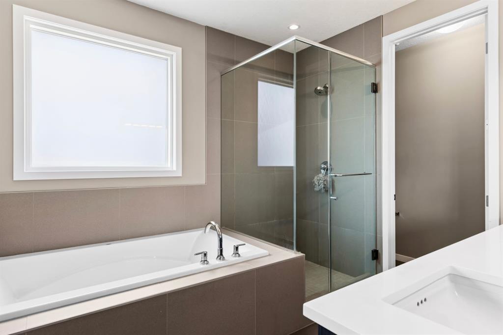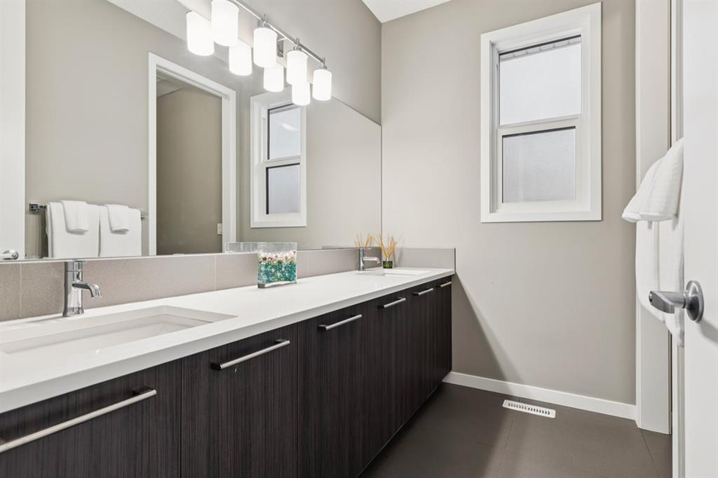 This Cedarglen home, just 7 years young, presents a sophisticated, contemporary design, clean and crisp throughout. Featuring a bright, open plan, 9 foot ceilings and 8 foot doors across all three levels, wide plank hardwoods, quartz countertops and an urban vibe throughout – SHARP! This two storey home, just seven years young .... SHOWS LIKE NEW, offering 3218 sq ft of living space over three levels, 3+1 beds PLUS a Bonus Room up, 3.5 baths and a fully developed lower level! Your family will love this space. This is a premier address, West Grove estates, a lightly travelled crescent in highly desirable West Springs.... a wonderful tot park steps away, great schools, shopping and services within walking distance of your new home! On arrival you will be struck by the exposed aggregate drive and walkway, and acrylic stucco – NICE! Entering you will love the 9’ ceilings (on all 3 levels!), wide plank hardwoods and the BRIGHT, OPEN PLAN, with its western exposure and wall of windows across the back The main floor centers around the Great Room in back, a broad open space with a large family room, generous dining space and a striking kitchen. The kitchen features an abundance of counter space, a center island breakfast bar, S/S appliances including a gas cooktop and wall oven, a SPACE for ENTERTAINING… leading directly to your rear composite deck which spans the entire back of the house – NICE! Leading upstairs you will find a large Bonus Room and three beds. The primary retreat is generous in size and features a 5pc en suite complete with quartz countertops, a soaker tub, free-standing seamless glass shower and a large walk-in closet with built-ins. The two additional beds up are also generous in size and share a full 5 pc bath. The lower level has been professionally developed and offers a broad open rec room which will easily accommodate a media space and/or fitness space as you choose, plus a guest bedroom and full bath.