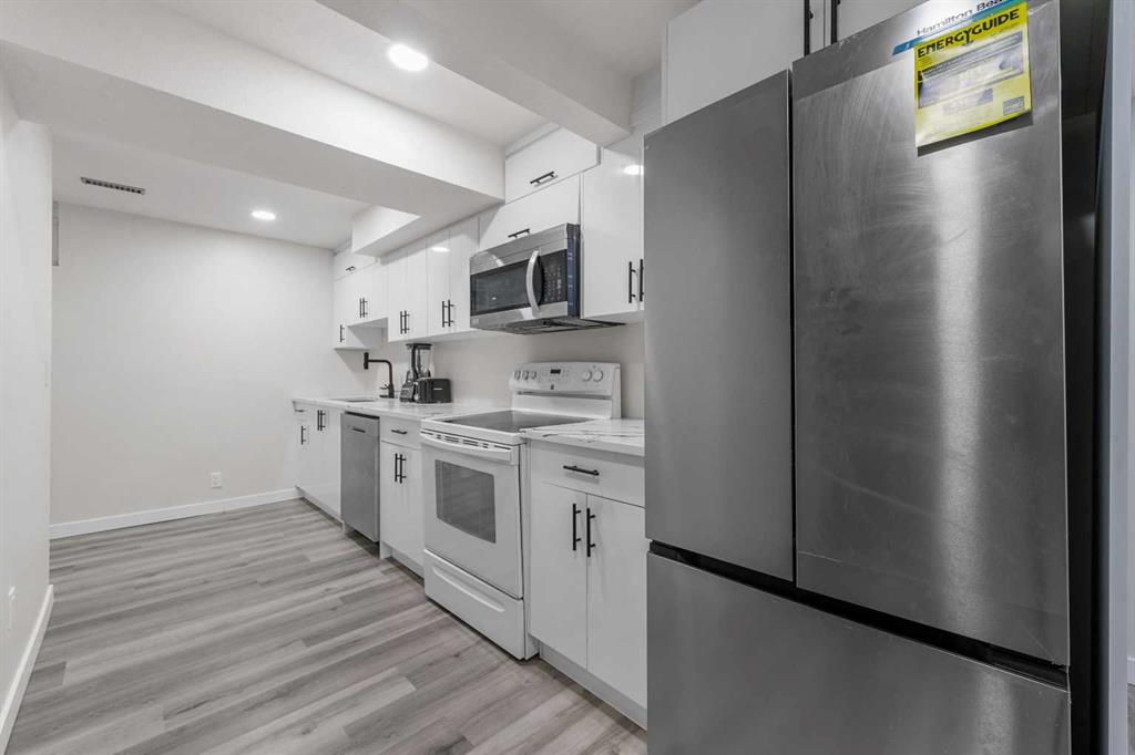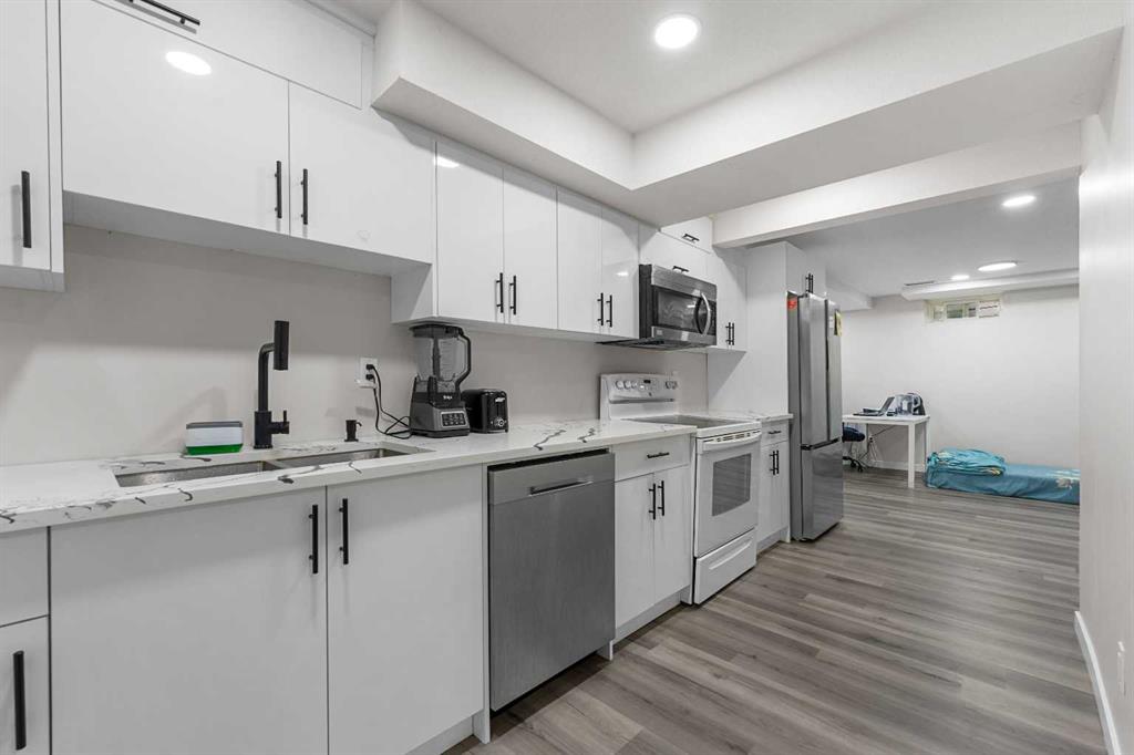 5 Minute Walk to Whitehorn LRT Station | Legal 1 Bedroom Basement Suite | Gorgeously Renovated | Bay Windows | Vaulted Ceiling | New LVP Flooring | Freshly Painted Walls & Ceilings | New Vinyl Windows | New LED Light Fixtures | Recessed Lighting | Upgraded Quartz Countertops | Stainless Steel Appliances | Great Living Space | Spacious Bedrooms | Main Level & Basement Laundry | Separate Entrance | Wet Bar | Gas Fireplace | Basement Kitchen | Deck | Patio | Great Backyard | Brand New White Vinyl Fence | Front Parking Pad | Street Parking | Incredible Family Friendly Neighbourhood | Close to All Amenities. Welcome home to your beautiful 4-level split family home boasting 3 Beds & 2 baths in the upper half and 1 Bed & 1 Bath in the Legal basement suite. This home boasts 2,260 SqFt between all four levels with incredible living space. The front door opens to a foyer where on the left is a spacious and bright living room with a large bay window and the right, your open floor plan kitchen and dining. The kitchen is upgraded to include quartz countertops and stainless steel appliances. The ample cabinetry gives you plenty of space for all your goods and kitchen equipment. The dining room has another character bay window and is paired with sliding glass doors that lead to a deck making indoor/outdoor living easy! The deck has a privacy screen to the street making it a private are to enjoy all summer long. This level is complete with its own stacked washer/dryer. Head upstairs to find 3 bedrooms and 2 bathrooms. The primary bedroom has a walk-in closet and private 3pc ensuite bath with a corner walk-in shower. Bedrooms 2 & 3 are both a great size and share the 4pc bath with a tub/shower combo. Downstairs, the legal 1 bedroom basement suite has a separate side entry and its own laundry making it a completely independent level in this home. The first lower level has a grand living space with a corner gas fireplace and wet bar with cabinets below and a single basin sink. This living space can be used as a bedroom as it has its own door for privacy. This level holds the bedroom and 3pc bath with a corner walk-in shower. Downstairs on the lower most level is a fully upgraded kitchen with full height upper cabinets, quartz countertops and stainless steel appliances. The open floor plan kitchen and rec room allows for a great blend of living and dining. Outside is the perfect backyard with no neighbours behind has ample lawn space and a patio for outdoor dining! The deep front parking pad provides you with private parking for two cars and street parking is readily available too. The location can't be beat here; step out your front door and within 5 minutes walking, you're at the Whitehorn LRT station. Take your pick of your commute route as this home is located near both 32nd Ave NE & McKnight Blvd NE. All shopping and amenities are within walking distance too. Hurry and book your showing at this incredible family home today!