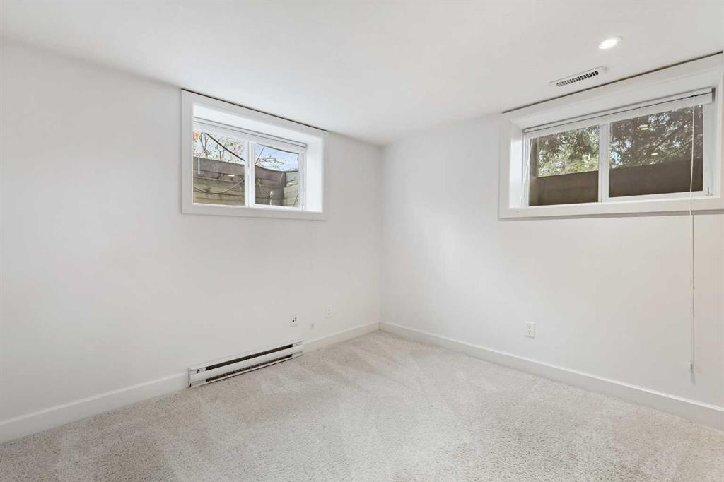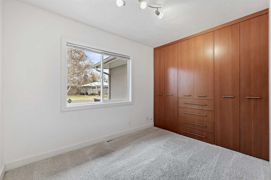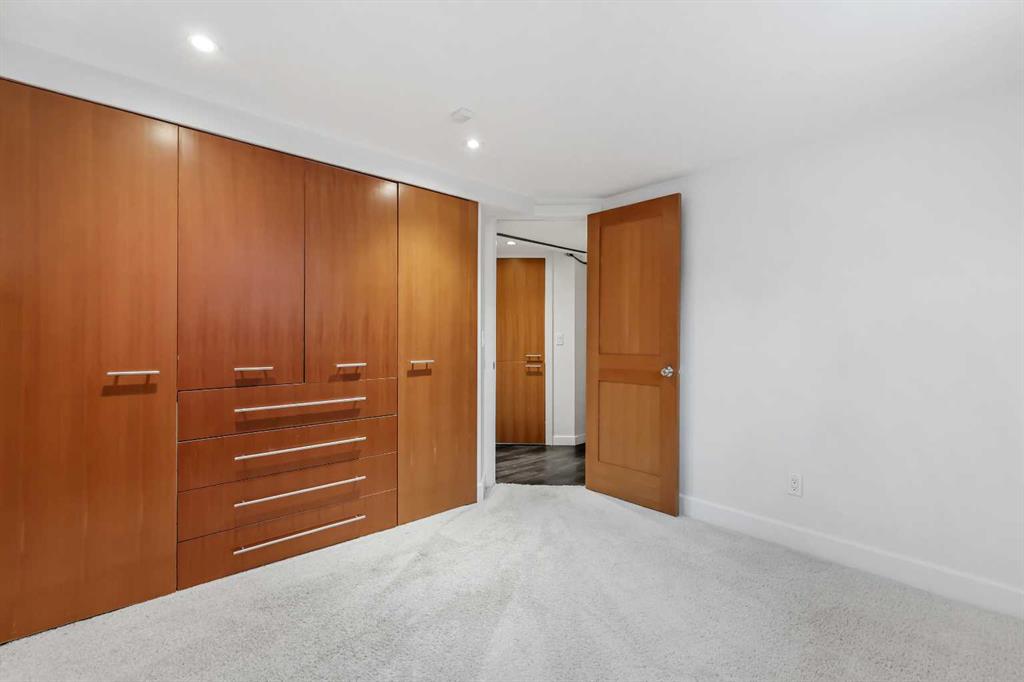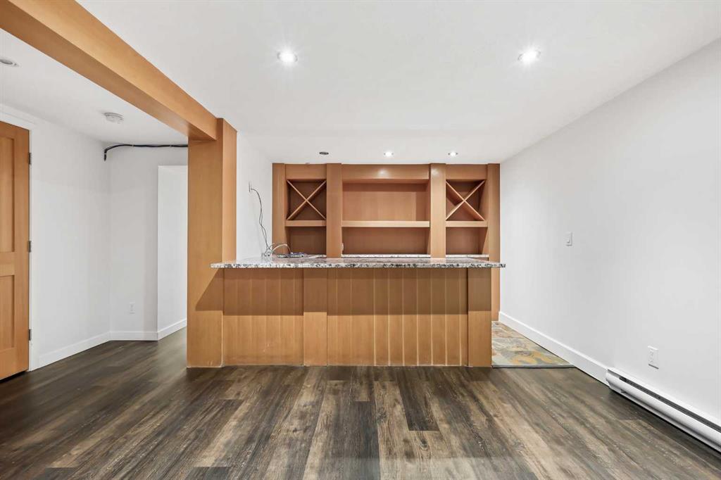 The primary suite provides a comfortable retreat, complete with custom closets and warm, relaxing tones. Downstairs, the fully developed basement extends the living space with a large family area and an impressive wet bar with dual wine racks and display shelving — an ideal spot to unwind or host friends.