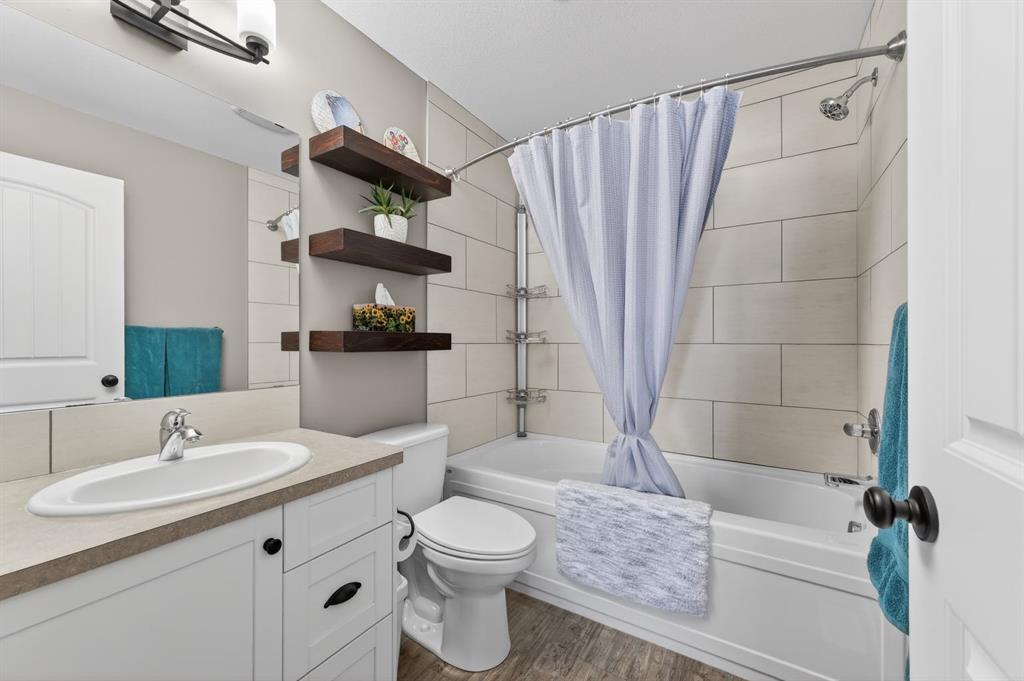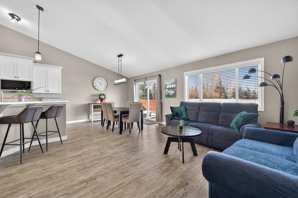 Welcome to this tastefully updated 1,400 sq ft bungalow in the community of Carstairs, conveniently located near the Grade 5–12 school and arena. A welcoming front family room greets you at the entry, while the rear of the home opens into a bright, open-concept kitchen, living, and dining area—ideal for everyday living and entertaining. The kitchen features a large central island, corner pantry, and ample space to accommodate a full dining set. Patio doors lead to a generous deck overlooking a large pie-shaped backyard with a variety of berry bushes and no neighbours behind, offering privacy and room to enjoy the outdoors. The main floor includes a comfortable primary bedroom with walk-in closet and ensuite, a second bedroom, and a full bathroom. Convenient main-floor laundry is located at the garage entry. The unfinished basement is spacious and ready for your vision, with a variety of future development options. A great opportunity to enjoy bungalow living with space to grow, close to schools, recreation, and all that Carstairs has to offer. Call your favourite local REALTOR today to have a look.