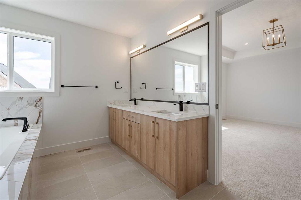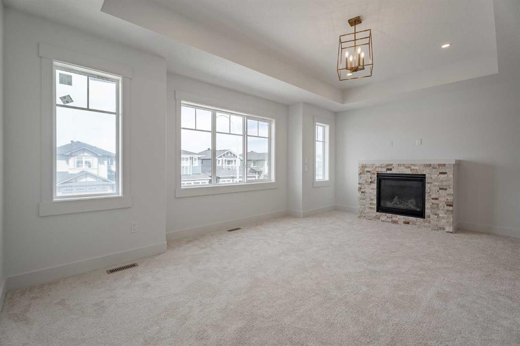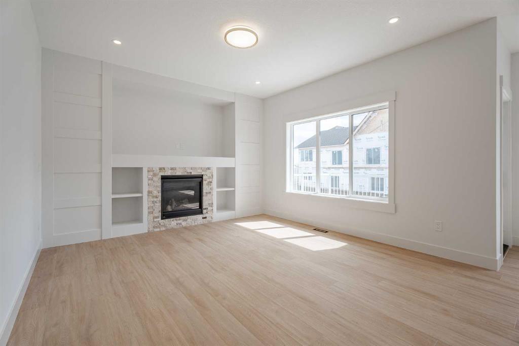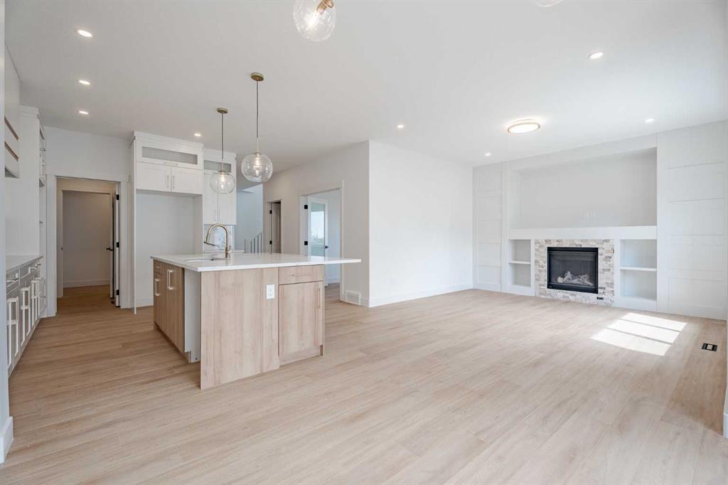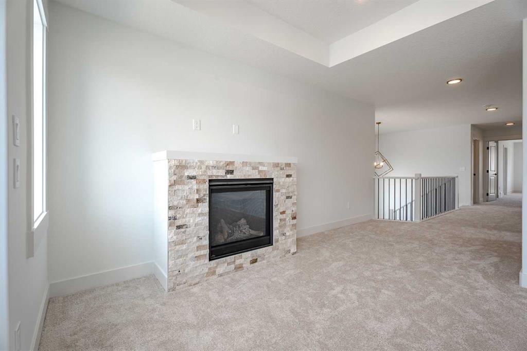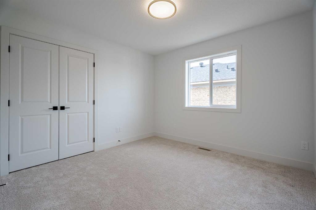 Quick possession available! Open Spaces + Happy Faces in a Country Quiet Community. Situated on a spacious south-backing lot (42' x 136'), this brand-new 2,450+ sq.ft. two-storey features an attached TRIPLE GARAGE (28' x 23') and side access walk-up basement. Bright, open main floor offers a spacious dining nook, modern kitchen with island, walk-through pantry (wood shelving), and a gas line for a stove, flowing into a welcoming family room with gas fireplace. A large mud room with wood bench and lockers, private work-from-home office, two-piece bath, and cathedral front entry complete the main level. Three bedrooms on the upper level including 15'9" x 14' primary suite with raised tray ceiling, large walk-in closet (wood shelving), and spa-inspired 5-piece ensuite with a double vanity. A bonus room with tray ceiling and gas fireplace, convenient laundry room, and a 4-piece main bath add even more functionality. The bright basement includes high efficiency mechanical, large windows for natural light. This home is beautifully finished with ceiling-height cabinets, quartz countertops, upgraded lighting, vinyl plank flooring, tile and carpet flooring, wood shelving in closests, and upgraded exterior stonework. Includes GST (rebate to builder), new home warranty, a 13' x 9' rear deck, front sod + tree, and a $5,000 appliance allowance. Located steps from the school, park, pond, and recreation facilities with quick access to Airdrie, Calgary, CrossIron Mills, and Didsbury Hospital—Scarlett Ranch offers the perfect balance of country quiet and city convenience. A little drive, a lot of savings, don’t miss this one!