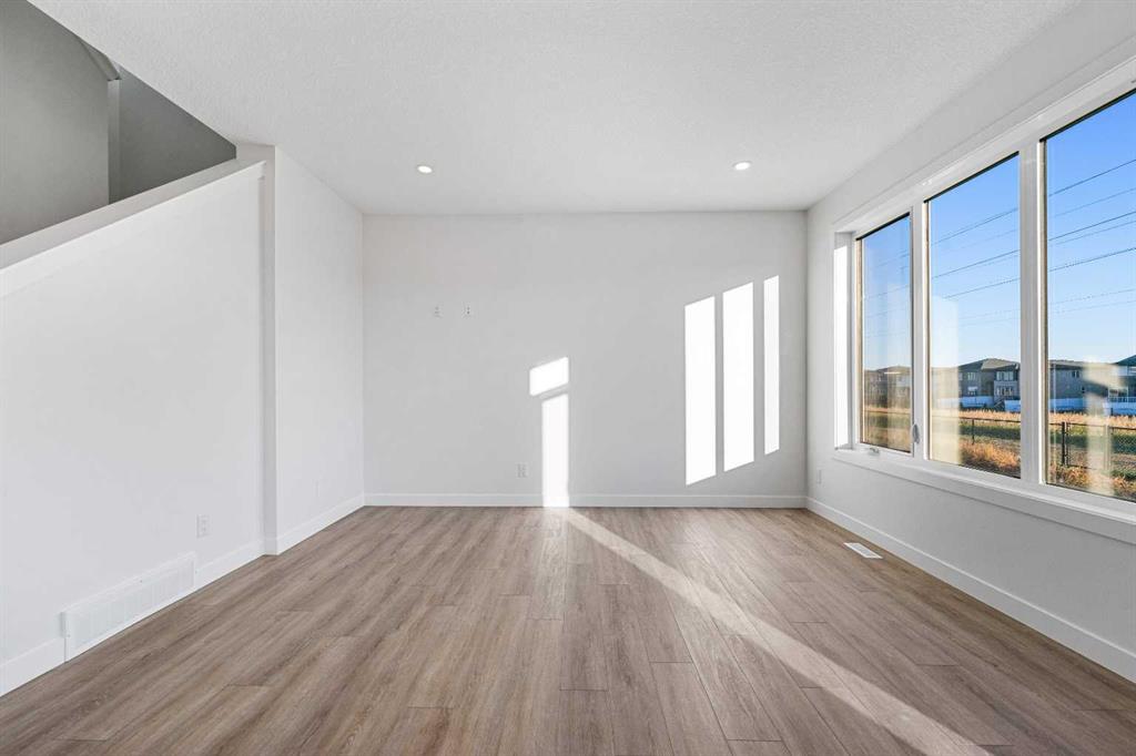 Welcome to The Nadia — a stunning, brand-new half duplex by the acclaimed Broadview Homes, offering 1,635 sqft of beautifully designed living space with an emphasis on style, comfort, and functionality. From the moment you step inside, you're greeted by a bright and airy open-concept layout enhanced by soaring 9’ ceilings on both the main floor and basement, wide plank flooring, and large windows that flood the home with natural light. The chef-inspired kitchen is a true highlight, featuring granite countertops throughout, ceiling-height cabinetry, a walk-in pantry, and a premium stainless steel appliance package, including a gas range, hood fan, and built-in microwave. Perfect for entertaining or everyday living, the kitchen flows seamlessly into the spacious dining and living areas. Upstairs, you'll find three generous bedrooms, including a sophisticated primary bedroom with a walk-in closet and private ensuite. A well-placed bonus room provides the ideal space for a home office, media room, or play area, while convenient upper floor laundry adds everyday ease. Additional upgrades include a 200 AMP electrical panel, granite countertops in all bathrooms, and a front-attached double garage with full driveway. With exceptional craftsmanship and thoughtful design, The Nadia offers a truly elevated living experience — combining modern luxury with everyday practicality