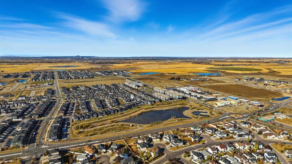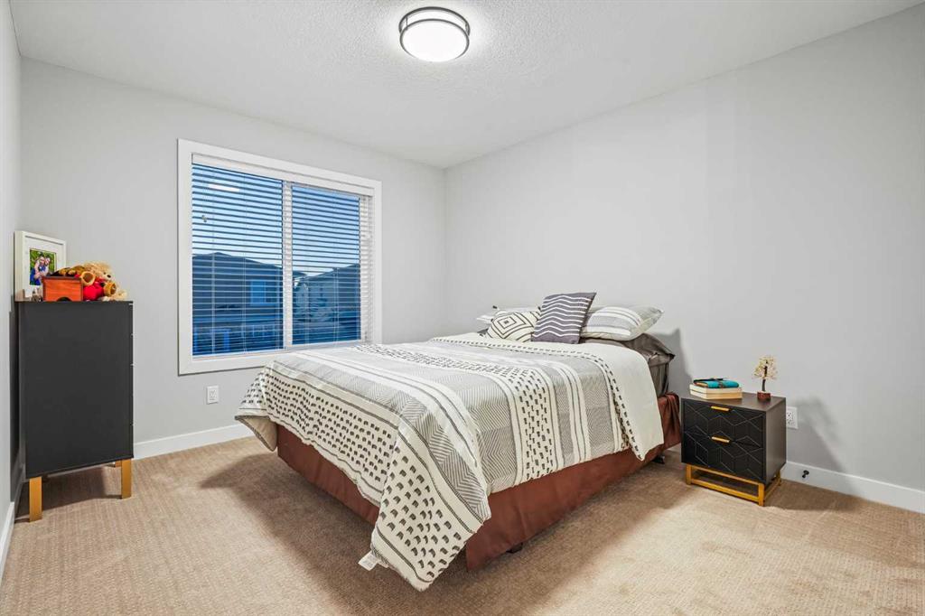 Welcome to your dream home in Dawson’s Landing! Over 2100 Square Feet of developed space! A stunning, like-new 2022 Truman-built "cottage" series, exclusive home that combines luxury design with everyday comfort. Meticulously maintained and filled with premium upgrades, this home truly stands out from the rest. The main floor features wide-plank flooring, 9’ ceilings, and a bright, open-concept layout perfect for entertaining. The designer kitchen impresses with navy cabinetry, quartz counters, brass hardware, a custom tile backsplash, and stainless steel appliances, including a gas range and built-in microwave. A walk-in pantry offers exceptional storage, while the electric fireplace and large windows create a warm and inviting living space. A stylish powder room and mudroom with access to the double attached, drywalled garage complete the main floor. Upstairs, the primary suite is a true retreat, complete with a feature wall, large windows, and a bonus flex room ideal for a nursery or home office. The spa- inspired ensuite features quartz counters, a large tiled shower with a bench, and an oversized walk-in closet. Two additional bedrooms, a full bathroom, and a convenient upper laundry complete the level. The fully developed basement offers a fourth bedroom, a full bathroom, and plenty of extra storage. Step outside to enjoy a beautifully finished backyard with a new patio, pergola, and raised flower boxes—a perfect space for summer gatherings. Located on a quiet street just 25 minutes to downtown Calgary and minutes to Stoney Trail, schools, shops, and Lakeside Golf Club, this home offers exceptional value in one of Chestermere’s most desirable communities. Don’t miss your chance to own this one-of-a-kind Truman Cottage home—where every detail has been carefully chosen for quality, style, and comfort.