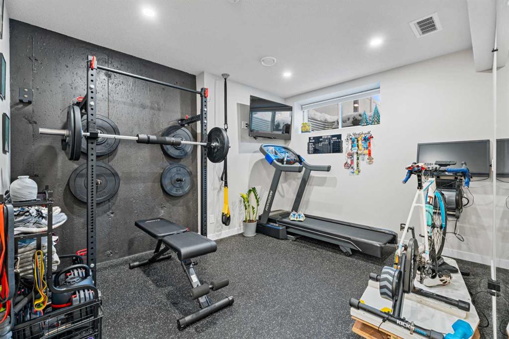 This home truly has it all, offering over 2,200 sq. ft. of beautifully developed living space. Step inside to a bright, open layout that instantly feels welcoming. Wide vinyl plank flooring runs underfoot, drawing your eye to the bio flame fireplace framed by a stylish mantle and slat-wall feature that anchors the room and sets a warm, modern tone for the rest of the house. From the living room, the layout flows naturally into the dining area, perfectly positioned for both everyday meals and weekend gatherings. Just off to the side, a thoughtful main-floor office nook offers a dedicated spot for working from home, kids’ homework, or managing the household calendar. Beyond the dining area, the kitchen feels both polished and practical. Two-tone cabinetry pairs with stainless steel appliances, quartz countertops, and a herringbone tile backsplash for a designer aesthetic, while the centre island with breakfast bar seating keeps everyone connected. A functional mudroom at the back entry, complete with a built-in seat and hooks, keeps coats, boots, and backpacks organized, making daily comings and goings a little more effortless. Upstairs, in the primary bedroom, a calm retreat with a stylish ensuite and a large walk-in closet. It’s thoughtfully set apart from the two additional bedrooms, giving everyone a bit of extra privacy. The secondary bedrooms are generous in size and ready to adapt as kids’ rooms, guest space, or a second home office. Descend to the lower level to discover a cozy rec room that’s ideal for movie marathons or game nights, a wet bar to set up for snacks, and a dedicated gym space so you can skip the commute to the fitness centre and work out at home instead. Outside, the backyard offers a composite deck on a steel frame, perfect for BBQs, as well as zero maintenance landscaping, a vinyl fence for privacy and leads to an exceptional 22’ x 20’ detached double garage with 10’ ceilings, insulation and drywall, attic trusses with an access hatch and ladder for extra storage, a 16’ x 8’ garage door, 60A electrical service with EV charging, a 4 kW fan heater, and a side mount garage door opener, it’s perfectly set up for cars, or hobbies. All of this is tucked into Dawson’s Landing in Chestermere, a vibrant, family-focused community where life meets nature. Here you’re moments from nearly 30 acres of planned protected wetlands and a 22-acre environmental reserve with scenic trails and a unique EcoPark, plus year-round recreation at nearby Chestermere Lake for swimming, boating, skating, and lakeside walks. With convenient access to schools, parks, shopping, and an easy commute into Calgary, this property offers a polished home in a community designed for everyday living and weekend play. Sellers are downsizing and some items may be negotiable.