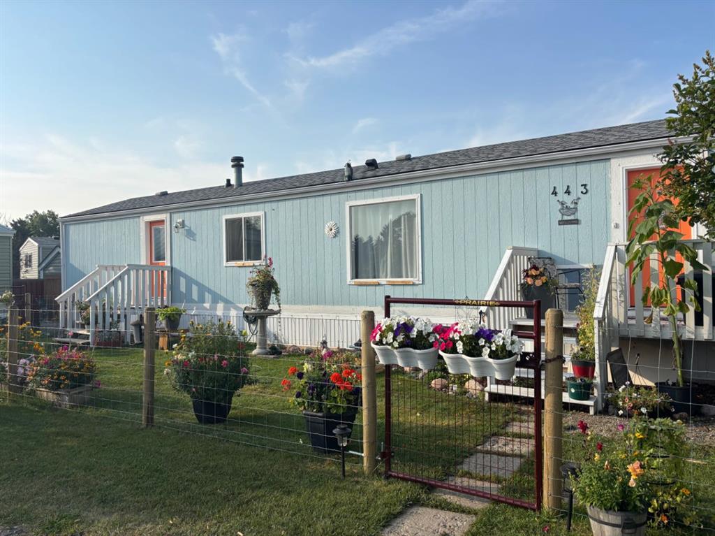 **Open House - Sunday, February 8, 1-4pm** Welcome to Homestead Acres, a sought-after, 50+ adult living community in High River. This affordable, well-cared-for 1997-built home at 443 Homestead Trail offers comfort, convenience, and a fantastic setting. Pride of ownership is evident throughout, with recent updates including a perennial garden, recent painting, new lighting and professional levelling. The bright, open living room and kitchen create an inviting space for everyday living and relaxed entertaining. The bedrooms provide flexibility for visiting family, hobbies, or a home office, with the primary bedroom featuring a private 4-piece ensuite. Enjoy the privacy of one of the largest fully-fenced yards in the park, with a sunny southern exposure—ideal for gardening or simply relaxing outdoors. The front yard is also fenced adding security and comfort if you have dog(s). A large green space just beyond the yard offers a beautiful, open view and easy access to walking paths and natural surroundings. With so much to offer at an excellent price, this home is a wonderful opportunity to enjoy comfortable, low-maintenance living.