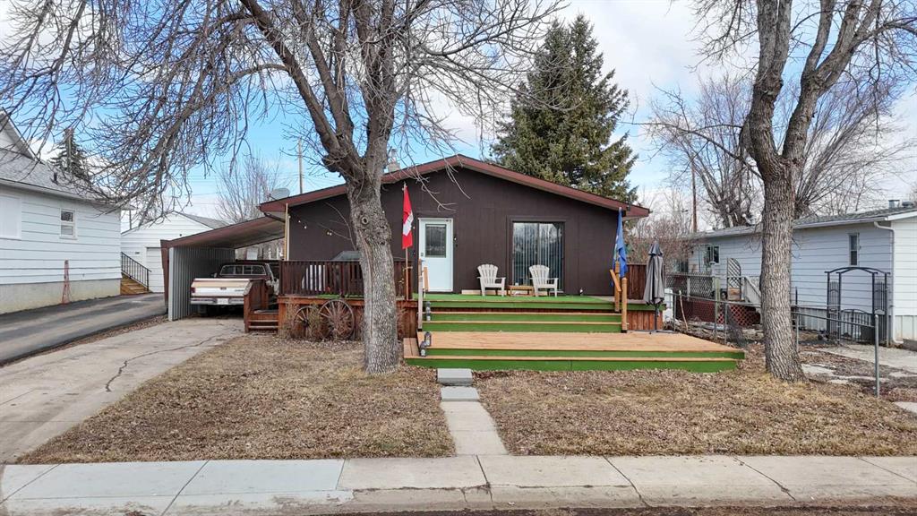 Quiet rural life style in the small town of Rockyford. 2+1 bedroom home with main floor laundry. Basement features large family room, bedroom and 2 piece bathroom with shower rough in. 2 decks and large backyard. Carport and storage shed. Quick Possession.